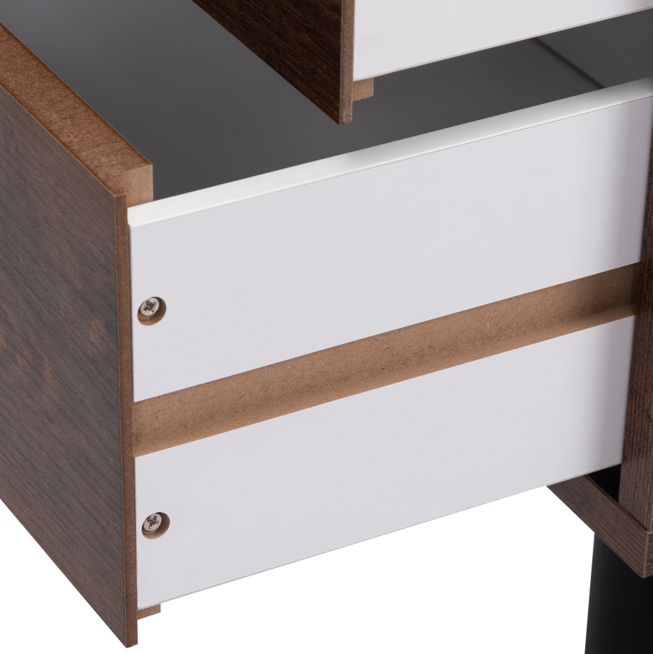 Brown nightstand featuring two spacious drawers and sturdy solid wood legs, ideal for bedroom or living room use.