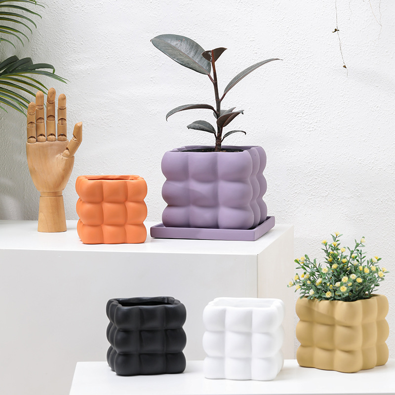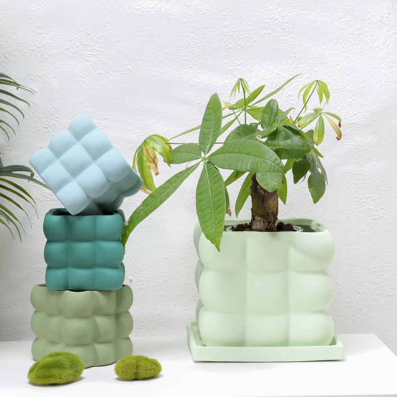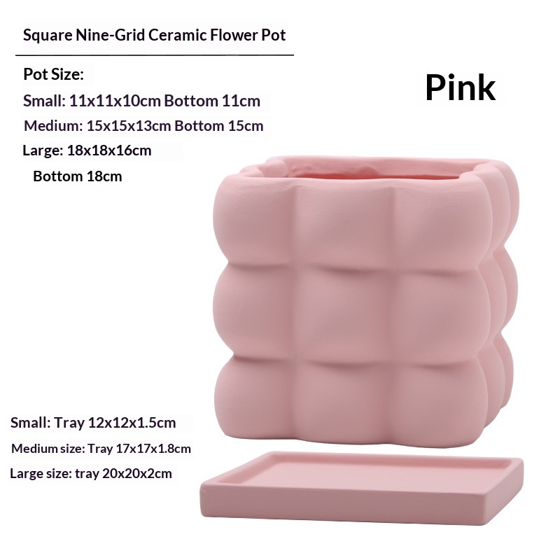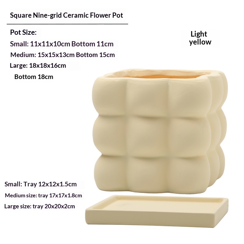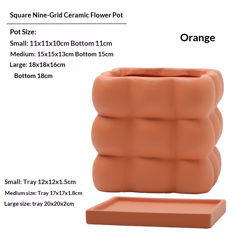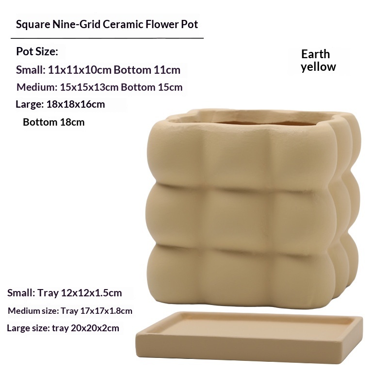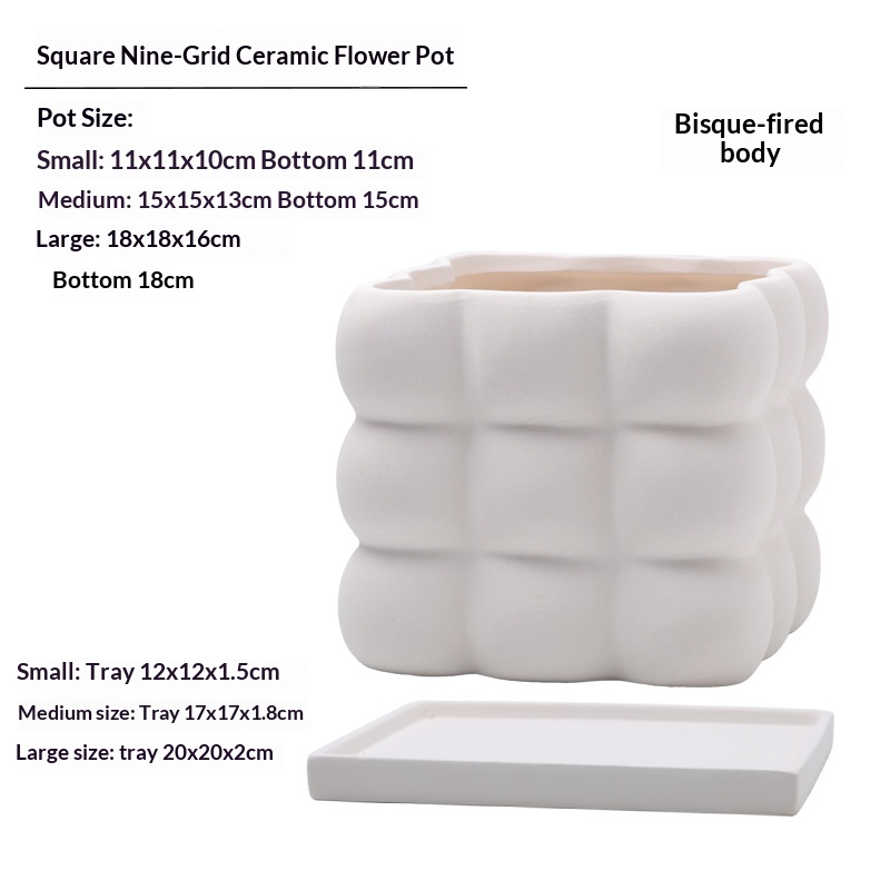 This ceramic flower pot features a nine-grid ball-shaped square design, combining aesthetic appeal with functionality. Crafted from high-quality ceramic, it ensures durability and a refined finish. Each compartment is equipped with drainage holes to prevent waterlogging and maintain optimal soil moisture. The included saucer collects excess water, protecting surfaces and promoting healthier plant growth. Ideal for indoor use, this flower pot facilitates organized planting of multiple small plants or succulents, making it suitable for home or office décor.