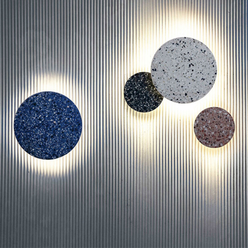 Elegant Nordic terrazzo round wall lamp with minimalist design, perfect for modern interiors and ambient lighting.