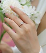 Elegant Oath wedding ring featuring 1-2 carat top-quality moissanite in S925 silver with platinum plating, tested by diamond pen, available in gold and rose gold.