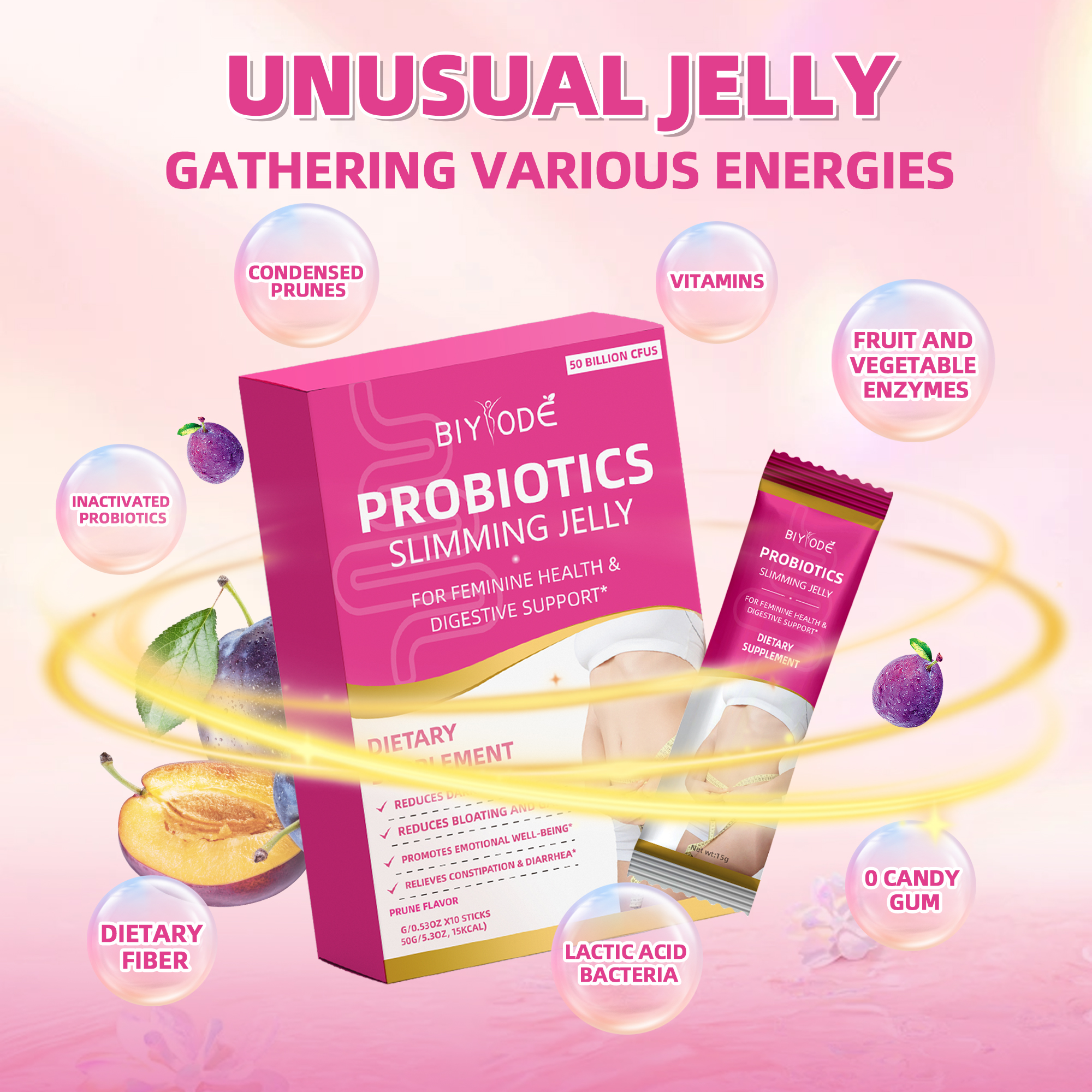 OEM ODM custom private label women’s daily probiotics slimming supplement jelly, designed for health and wellness support.