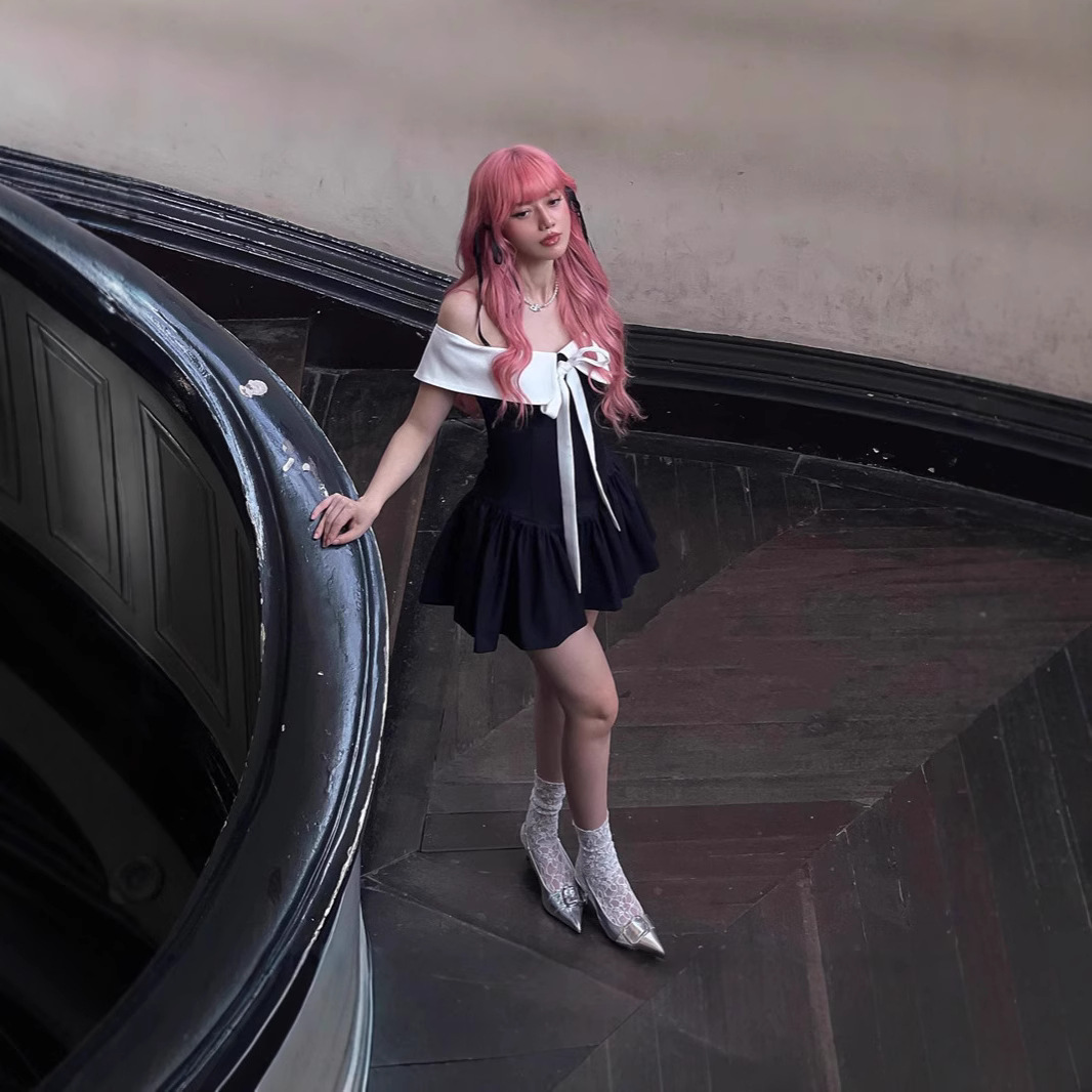 Be the first to review “Off-shoulder Bow Lace-up Waist Trimming Short-sleeved Dress” Cancel reply