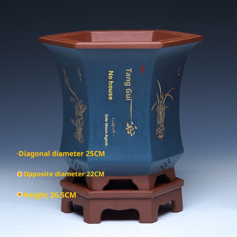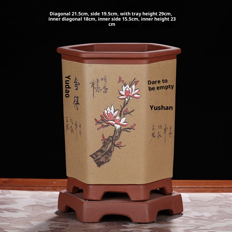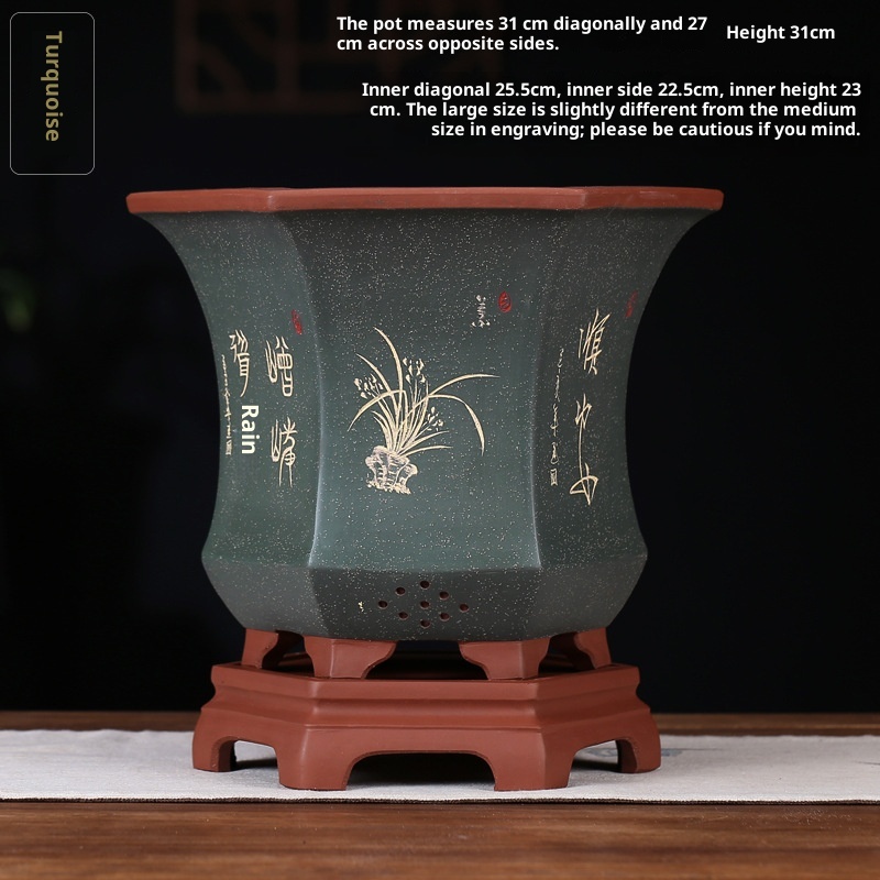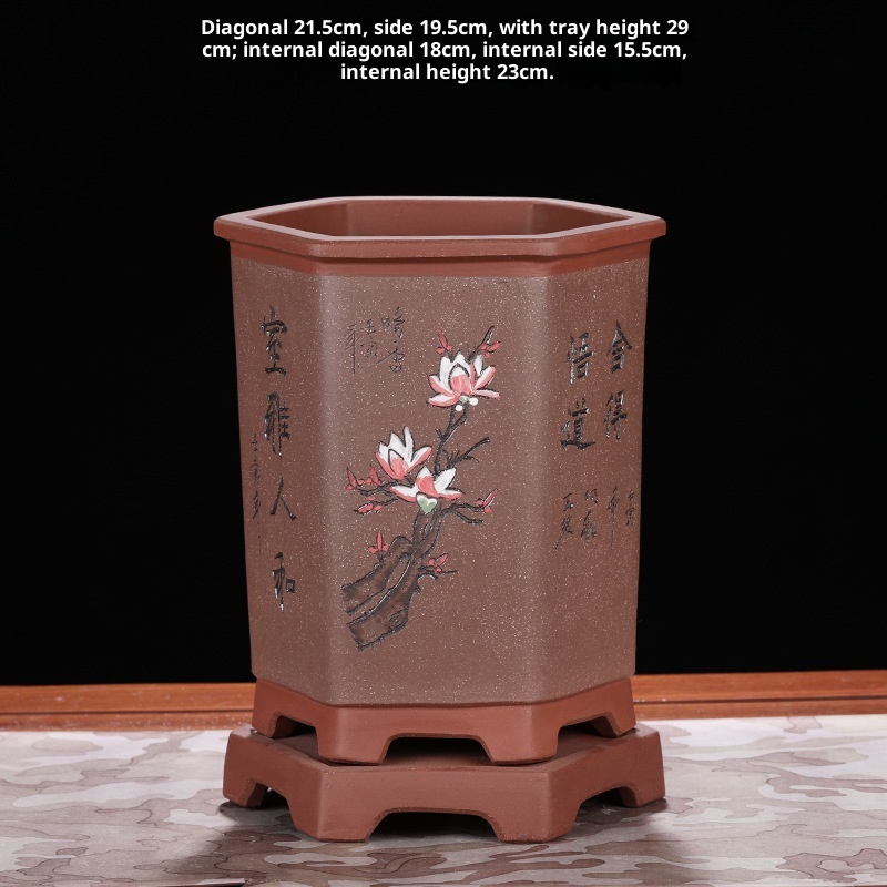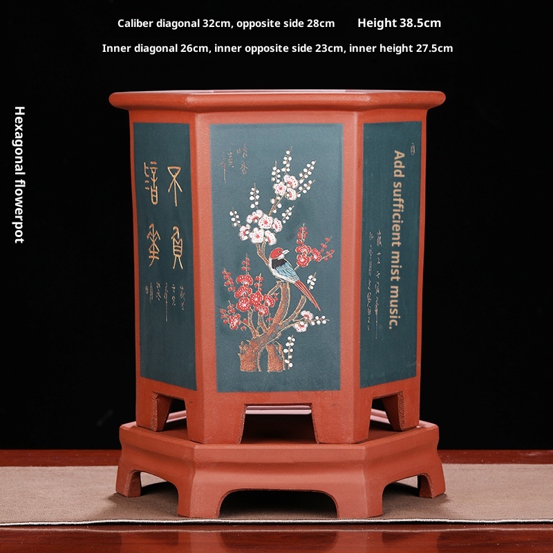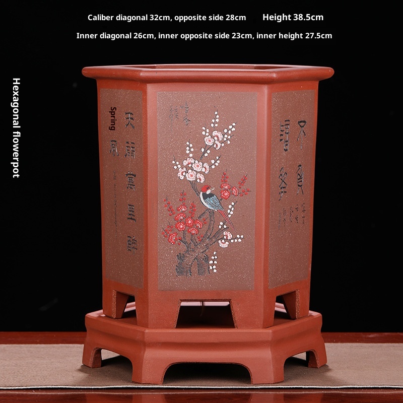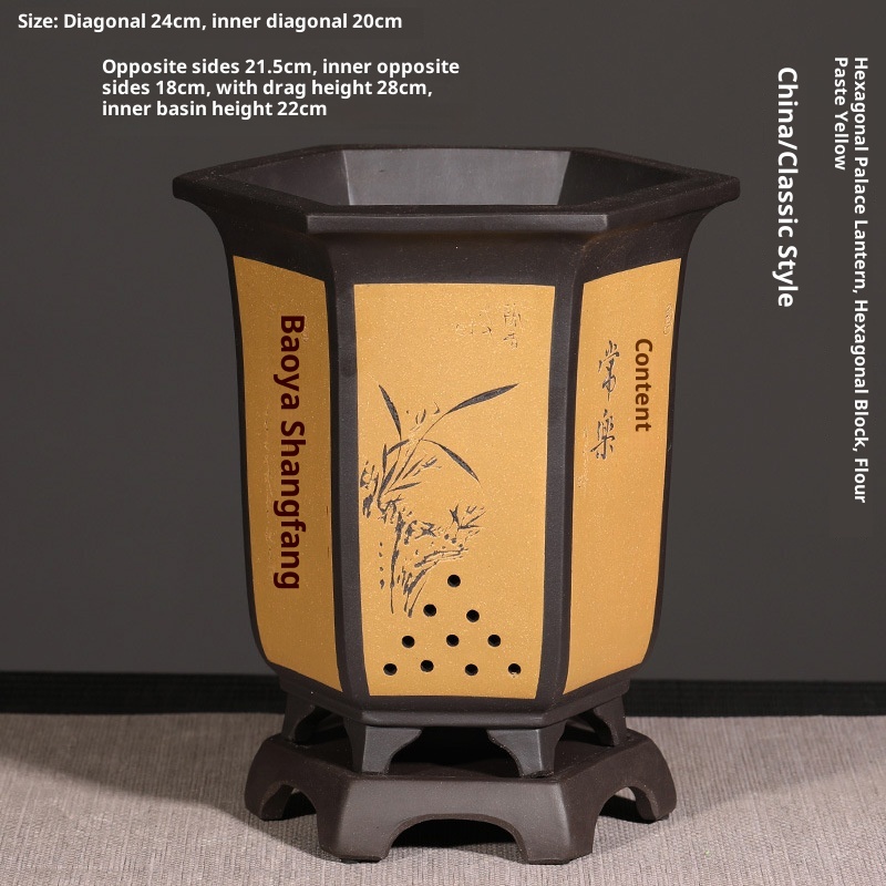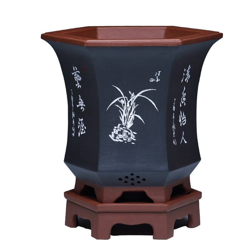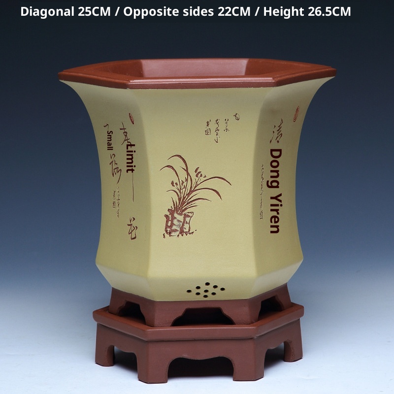 Authentic hexagonal Yixing purple sand flower pot, ideal for orchids and bonsai cultivation with natural clay material and superior craftsmanship.