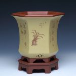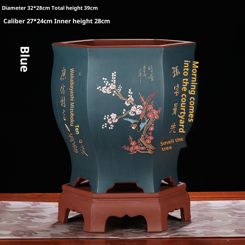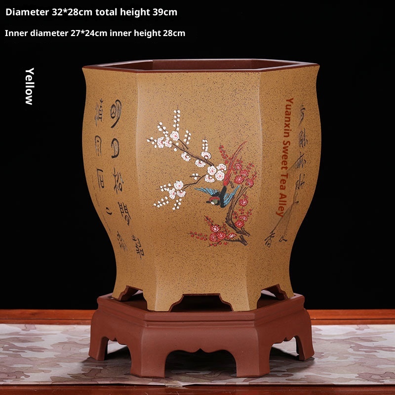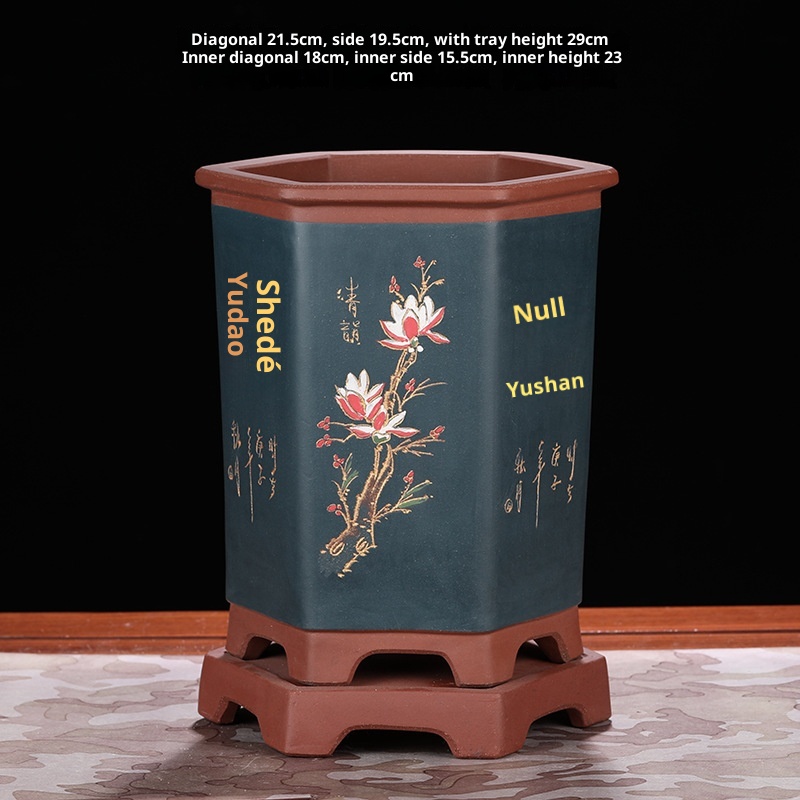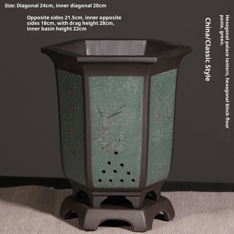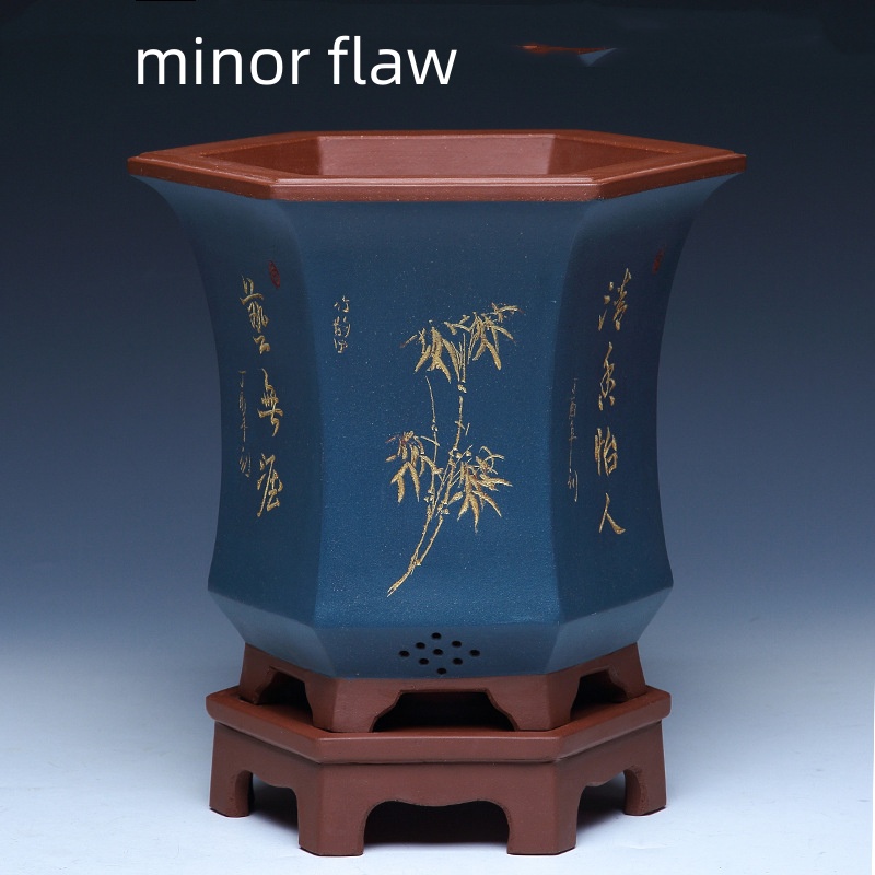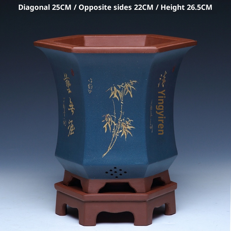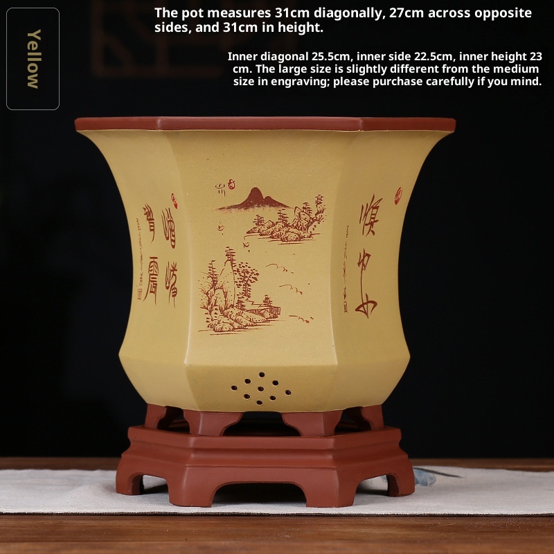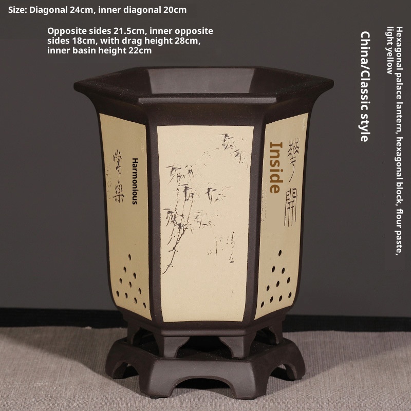 Authentic hexagonal Yixing purple sand flower pot, ideal for orchids and bonsai cultivation with natural clay material and superior craftsmanship.