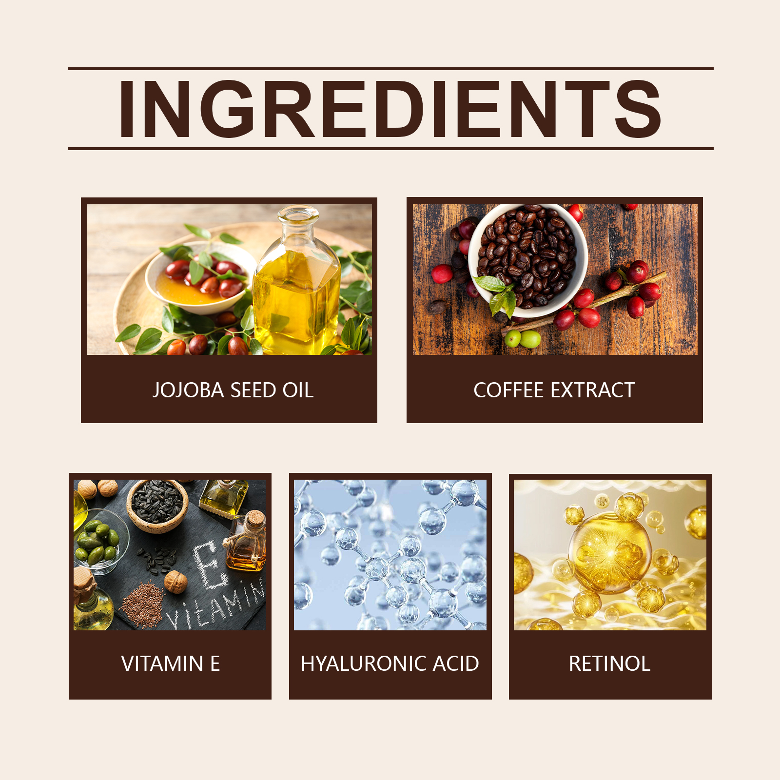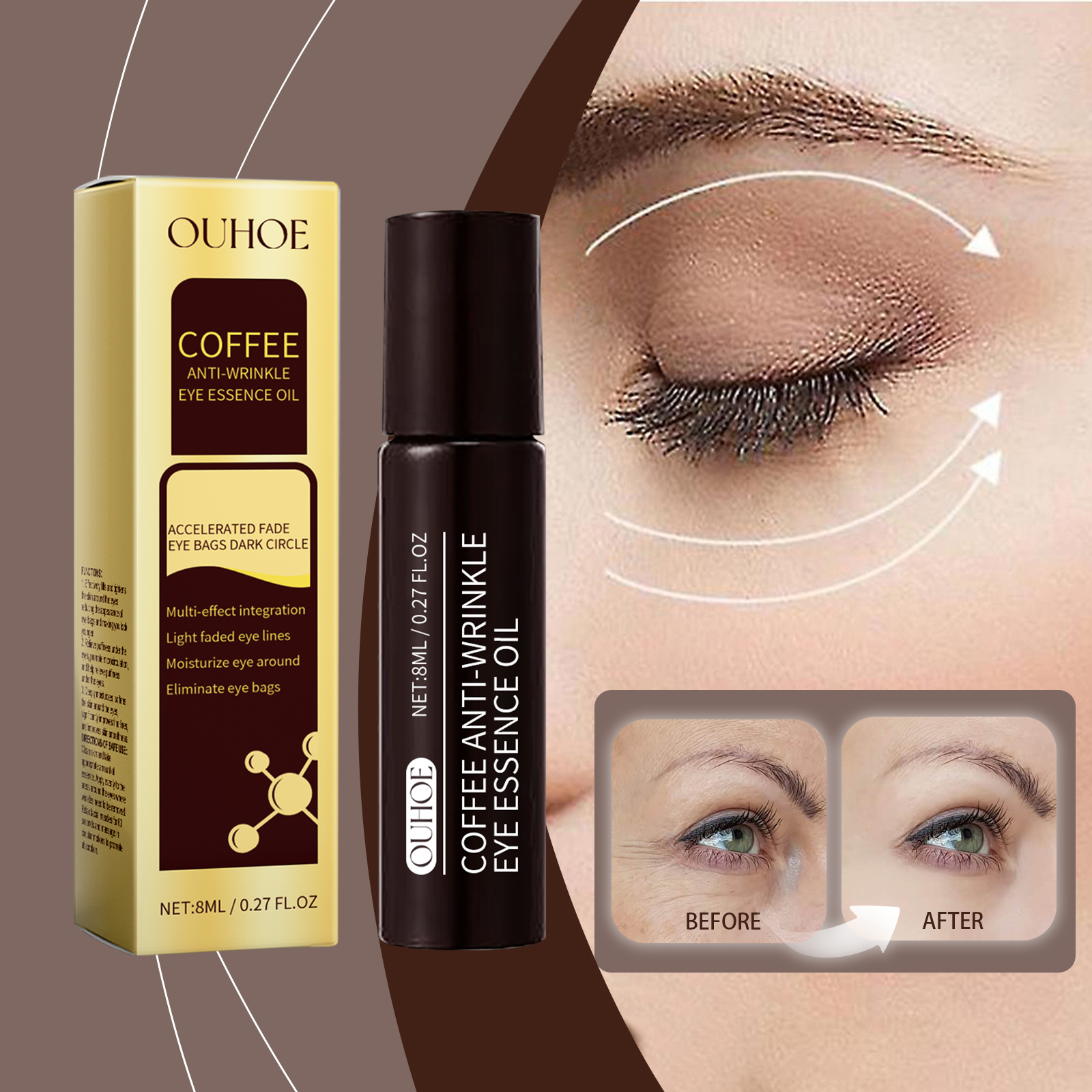 OUHOE Caffeine Eye Serum gently hydrates and firms delicate skin around the eyes for a refreshed appearance.