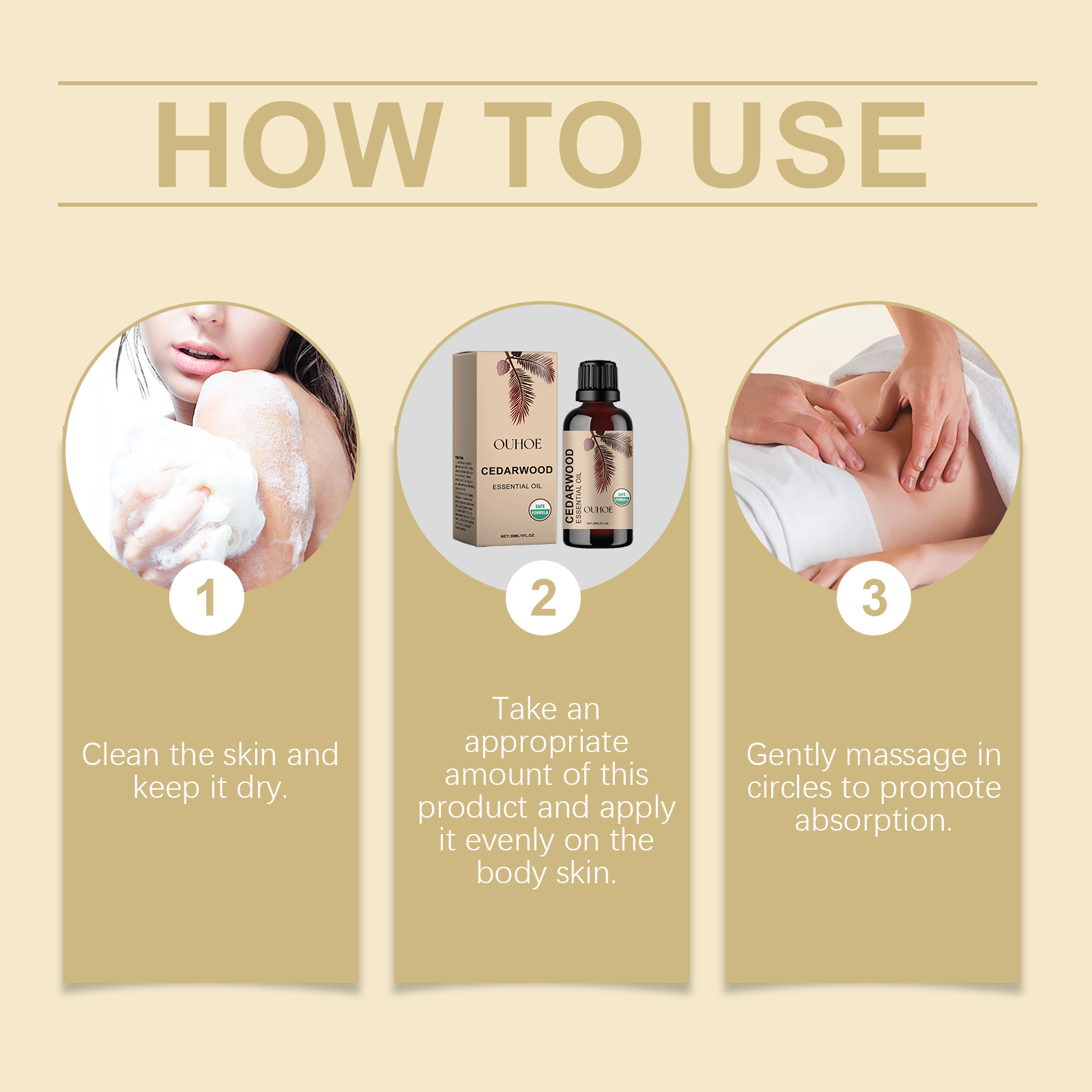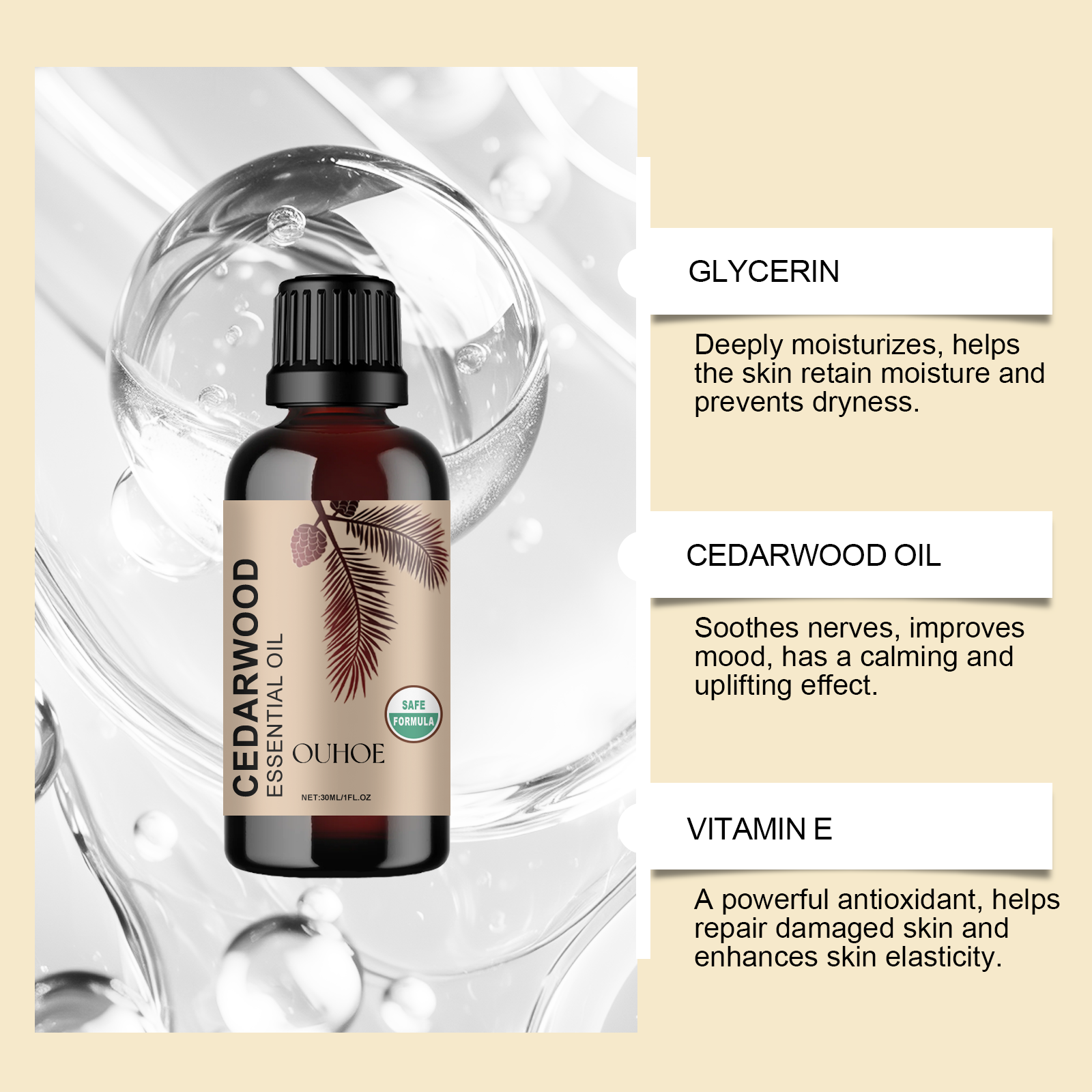 OUHOE Cedar Essential Oil offers moisturizing and soothing benefits with a delicate niche fragrance, ideal for balanced skin and relaxing massages.