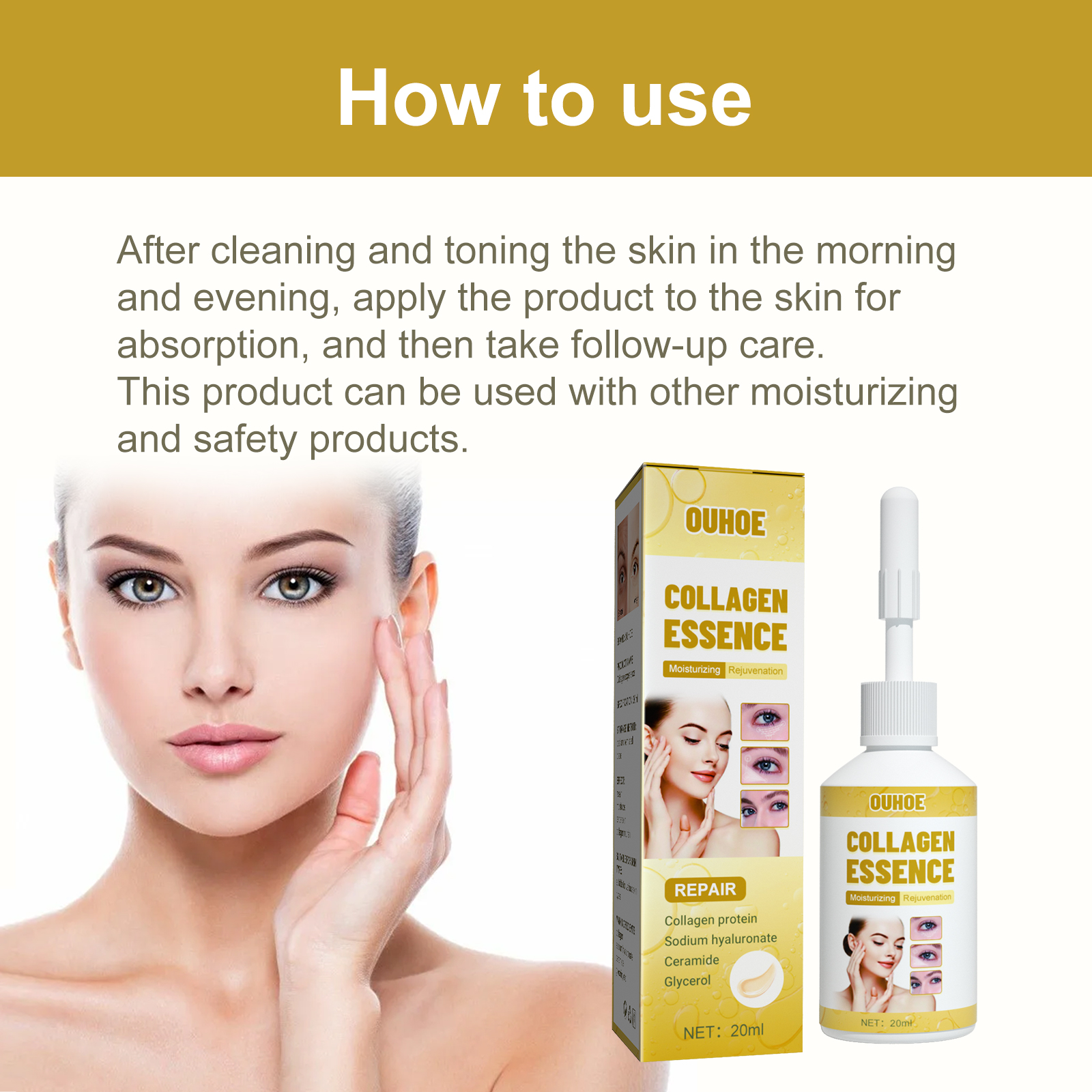 OUHOE Collagen Essence gently nourishes pores, promoting tender, smooth skin with daily use.