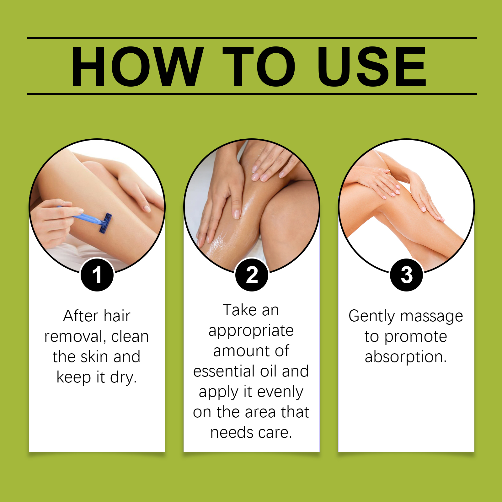 Our Balsamic hair removal essential oil contains rosehip extract, Radix aconite extract. It can promote skin repair and is suitable for sensitive skin. Its use is very simple: after hair removal, clean the skin and keep the skin dry; Take appropriate amount of essential oil, evenly apply to the parts that need care; Gently massage to promote absorption. It can also improve skin softness and prevent dry skin.