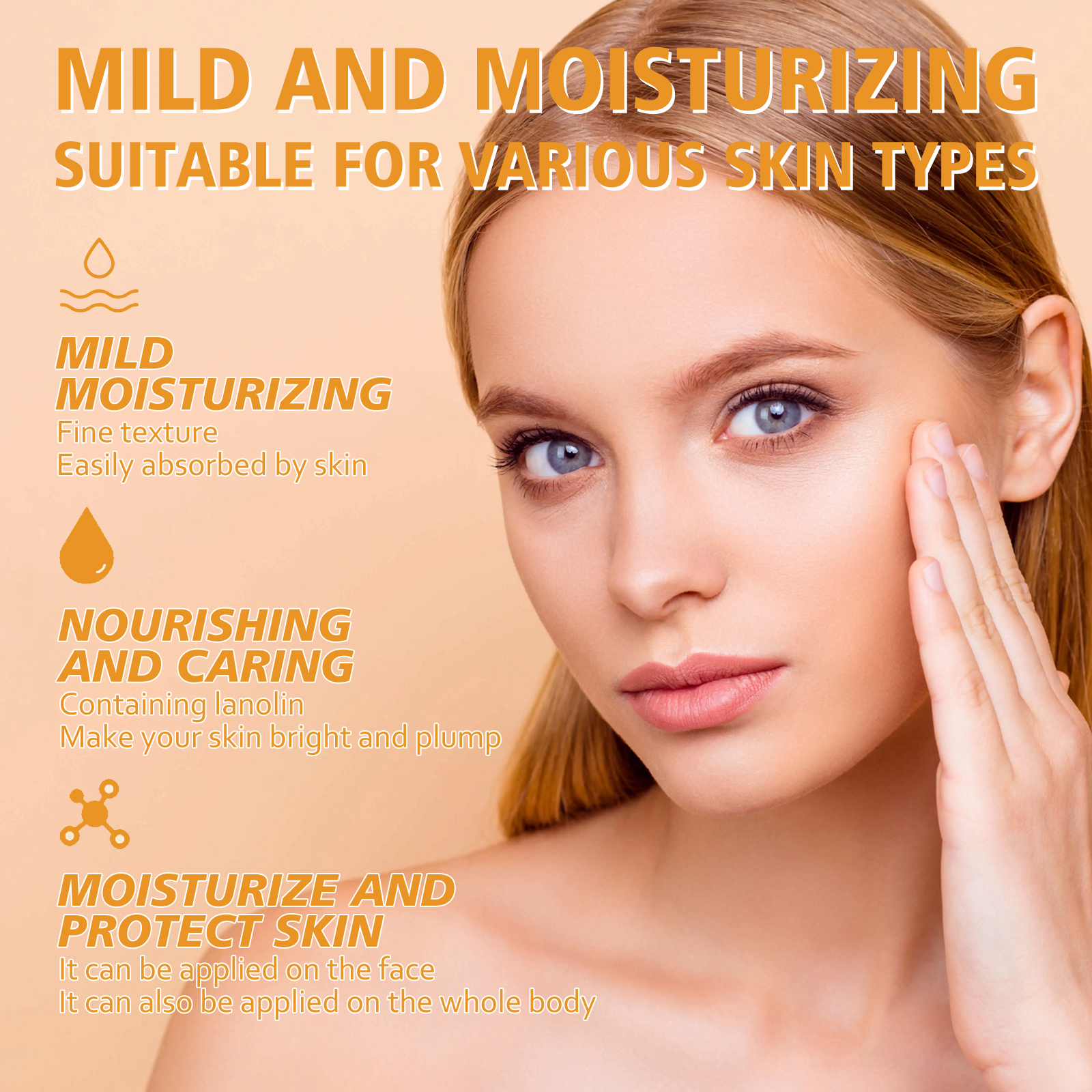 Our sheep moisturizer contains vitamin E, lanolin and glycerin. It rehydrates the skin, deeply nourishes the skin, brightens the complexion, improves skin elasticity, helps reduce the appearance of dullness and wrinkles, and prevents signs of skin aging. Its application method is very simple: first, after cleansing and toning, apply appropriate amount of this product evenly on the face, then gently massage the skin from inside to outside, from bottom to top, and finally gently apply along the skin texture, extending to the neck, slowly massage without washing. After use, it helps to tighten the skin, lighten the skin, replenish the skin collagen, and make the skin brighter and full of luster.