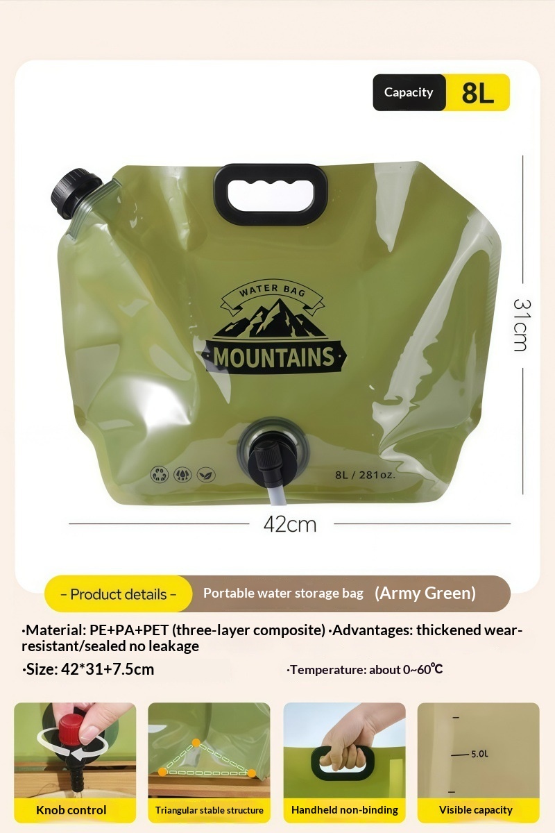 Durable thickened water storage bag for outdoor and car use, portable and reliable for convenient hydration on the go.