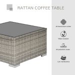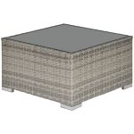 Light grey Outsunny square table made of durable PE wicker rattan with a sleek glass top, ideal for outdoor settings.