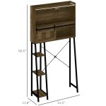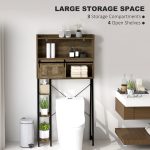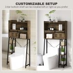 Maximize your bathroom space stylishly with the HOMCOM bathroom organizer over toilet. This toilet shelf organizer blends a rustic veneer with a sleek black steel frame featuring four shelves, three compartments, and a sliding door to conceal clutter. The bottom three-tier shelf allows you to install it on the left or right side, ensuring an optimal fit over your toilet for a neatly organized oasis. Features: – 22.8″ W x 11.8″ D x 35.8″ H bottom space, suitable for most toilets – Four shelves and three compartments streamline bathroom storage – Sliding door on middle compartment conceals items for neatness – Rustic veneer and black steel frame enhance bathroom aesthetics – Installable bottom shelf on either side for flexible configuration – Comes with anti-tipping design and adjustable foot pads – Assembly required Specification: – Color: Distressed Brown, Black – Material: Particleboard, Steel – Overall Dimensions: 31.5″ W x 11.8″ D x 60.6″ H – Bottom Space for Toilet: 22.8″ W x 11.8″ D x 35.8″ H – Top Shelf Size: 30.3″ W x 7.1″ D x 1.6″ H – Middle Large Compartment Size: 30.3″ W x 7.1″ D x 10.5″ H – Middle Small Compartment Size: 14.9″ W x 5.9″ D x 7.9″ H (each compartment ) – Bottom Shelf Size: 8.1″ W x 5.9″ D x 7.9″ H (small), 9.6″ W x 5.9″ D x 11.8″ H (middle), 11.4″ W x 5.9″ D x 12.2″ H (large) – Weight Capacity: 132 lbs (total), 22 lbs (shelf) – Item Label: 834-770V80CF Package Includes: – 1 x Over the Toilet Storage Cabinet – 1 x Manual Maximize your bathroom space stylishly with the HOMCOM bathroom organizer over toilet. Features: – 22.8″ W x 11.8″ D x 35.8″ H bottom space, suitable for most toilets – Four shelves and three compartments streamline bathroom storage – Sliding door on middle compartment conceals items for neatness – Rustic veneer and black steel frame enhance bathroom aesthetics – Installable bottom shelf on either side for flexible configuration – Comes with anti-tipping design and adjustable foot pads – Assembly required Specification: – Color: Rustic Brown, Black – Material: Particleboard, Steel – Overall Dimensions: 31.5″ W x 11.8″ D x 60.6″ H – Bottom Space for Toilet: 22.8″ W x 11.8″ D x 35.8″ H – Top Shelf Size: 30.3″ W x 7.1″ D x 1.6″ H – Middle Large Compartment Size: 30.3″ W x 7.1″ D x 10.5″ H – Middle Small Compartment Size: 14.9″ W x 5.9″ D x 7.9″ H (each compartment ) – Bottom Shelf Size: 8.1″ W x 5.9″ D x 7.9″ H (small), 9.6″ W x 5.9″ D x 11.8″ H (middle), 11.4″ W x 5.9″ D x 12.2″ H (large) – Weight Capacity: 132 lbs (total), 22 lbs (shelf) – Item Label: 834-770V80RB Package Includes: – 1 x Over the Toilet Storage Cabinet – 1 x Manual.