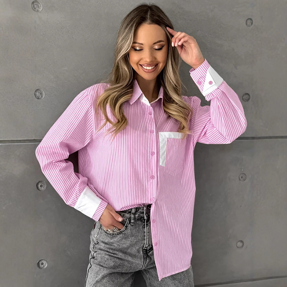 Relaxed fit oversized striped blouse for women, combining comfort with a modern look perfect for casual and professional wear.