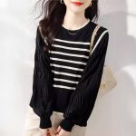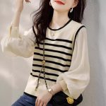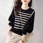 Be the first to review “Patchwork Lace Collar Knitted Striped Lantern Sleeve Top” Cancel reply