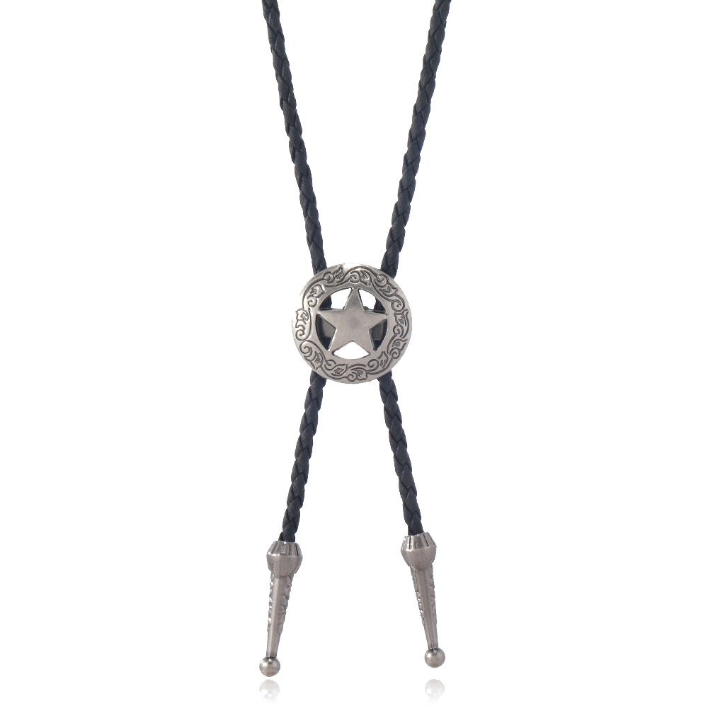 Men’s vintage punk leather necklace featuring a pentagram cow alloy pendant with a polo collar design.