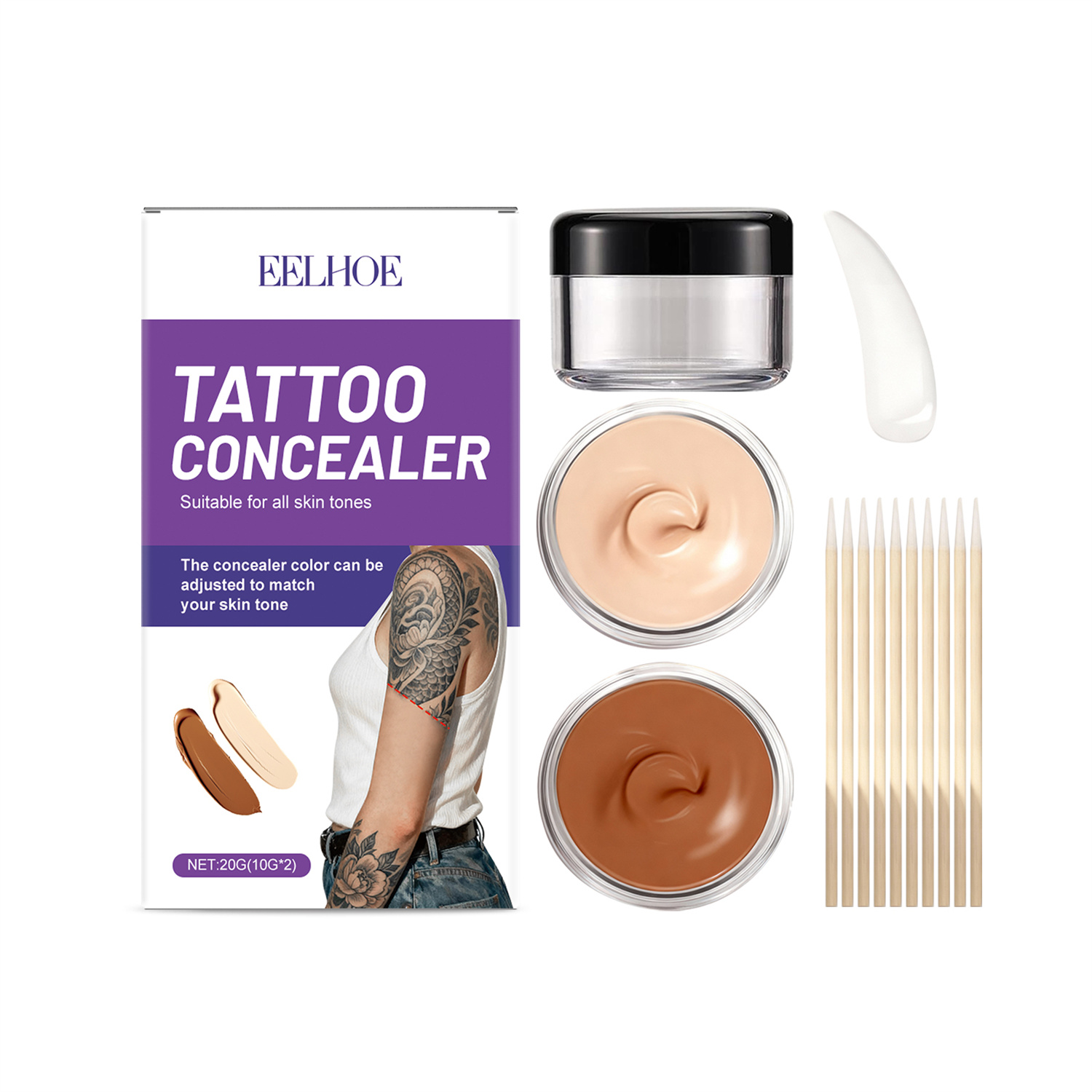 This Permanent Tattoo Concealer Set provides comprehensive coverage to effectively conceal tattoos with a smooth, natural appearance. Formulated for strong adhesion and water resistance, the set ensures long-lasting results throughout the day. The concealer has a creamy texture that blends easily with the skin, delivering uniform coverage without caking. Suitable for all skin types, it offers a professional solution for camouflaging permanent body art. The set includes multiple shades to match various skin tones and allows precise application for optimal camouflage. Its durable formula resists smudging and fading, maintaining coverage in diverse conditions.