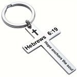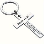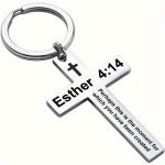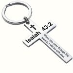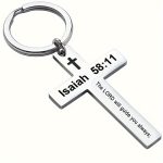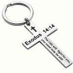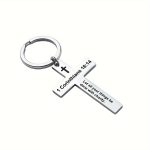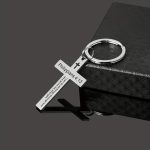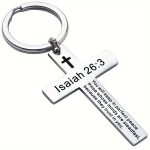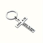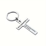 Durable stainless steel faith cross keychain with scripture lettering, combining style and meaningful design for everyday use.