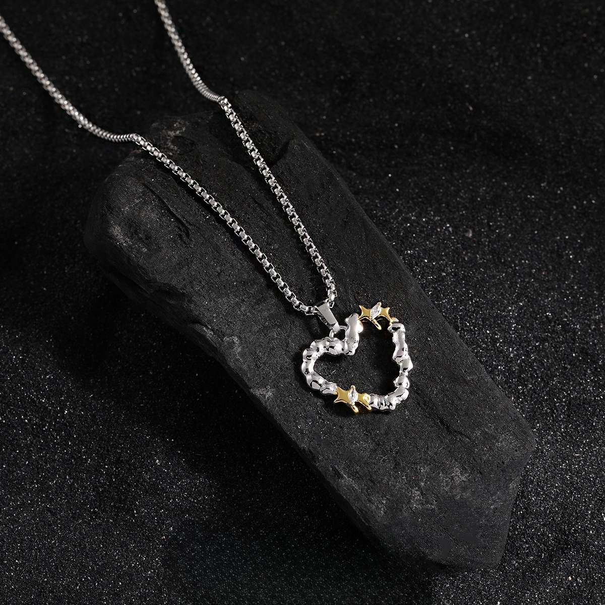 Unique hip hop style necklace with an irregular heart design crafted from durable titanium steel. Personalized accessory for bold fashion statements.