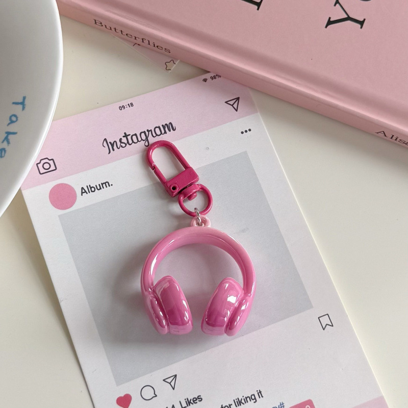 Customized small earphone pendant keychain serving as a stylish mobile phone charm and practical key holder.