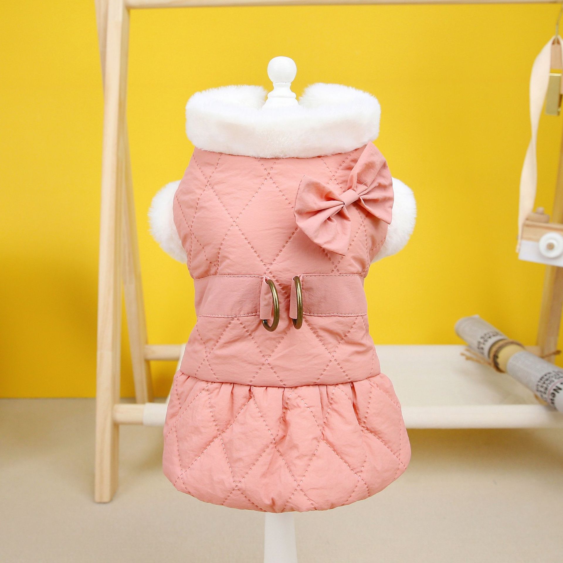 This cotton-padded dress is tailored specifically for small dogs, combining comfort and warmth with an elegant butterfly design. Crafted from soft, breathable materials, it ensures gentle wear while providing insulation during cooler weather. The dress fits snugly, allowing ease of movement and maintaining a stylish appearance. Ideal for keeping pets cozy and fashionable throughout the seasons.