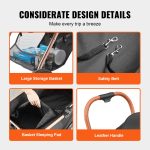 Features & Details 66 lbs Weight Capacity: This pet stroller supports up to 66 lbs. With large size of 83 x 59 x 105 cm/33.46 x 23.22 x 41.33 in, our dog stroller is suitable for dachshund, beagle, French bulldog, bulldog, cat and other small and medium-sized animals. Flexible Large Wheels: This dog stroller has wear-resistant and shock-absorbing PU large wheels (8″ front, 10″ rear), ensuring a comfortable ride for your pet on any path. The 360° swivel front wheels provide easy maneuvering, and the rear wheels’ dual-brake system provides safety for you and your pet. Just a gentle step on the brakes, and both wheels lock. The adjustable handle height provides convenience for every trip. 800D Oxford Fabric and Mesh Windows: The sturdy 800D Oxford fabric can withstand pet nibbling, keeping the cat stroller in pristine condition. Multiple breathable mesh windows ensure unhindered airflow, providing your pet with a wide field of vision. The button design allows for effortless unfolding. Dual-Purpose Carriage Basket: The large-capacity carriage basket of the puppy stroller provides ample space for your pet to move around and easily converts into a portable pet carrier for your convenience. The pet pad provides extra comfort for your pet, and the spacious storage basket meets all your storage needs. Plus, the pet safety belt ensures your beloved companion’s security during travels. Easy Folding: Say goodbye to complicated storage procedures. Our pet gear stroller requires just a gentle press to fold quickly. Its compact design allows for easy placement in the car trunk, saving you valuable space.