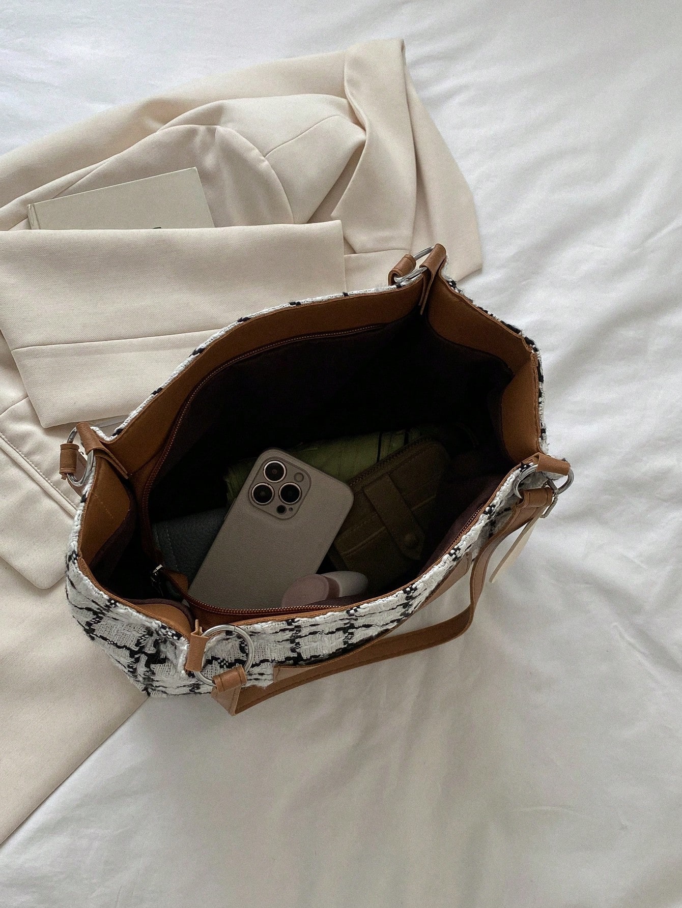 This plaid shoulder bag for women offers a spacious design ideal for carrying daily essentials. Crafted for fashion-conscious commuters, the tote features a classic plaid pattern complemented by a stylish pendant. Its large capacity accommodates various items, making it practical for casual outings and everyday use. The bag combines functionality with a fashionable aesthetic, suitable for diverse occasions and easy to pair with multiple outfits.