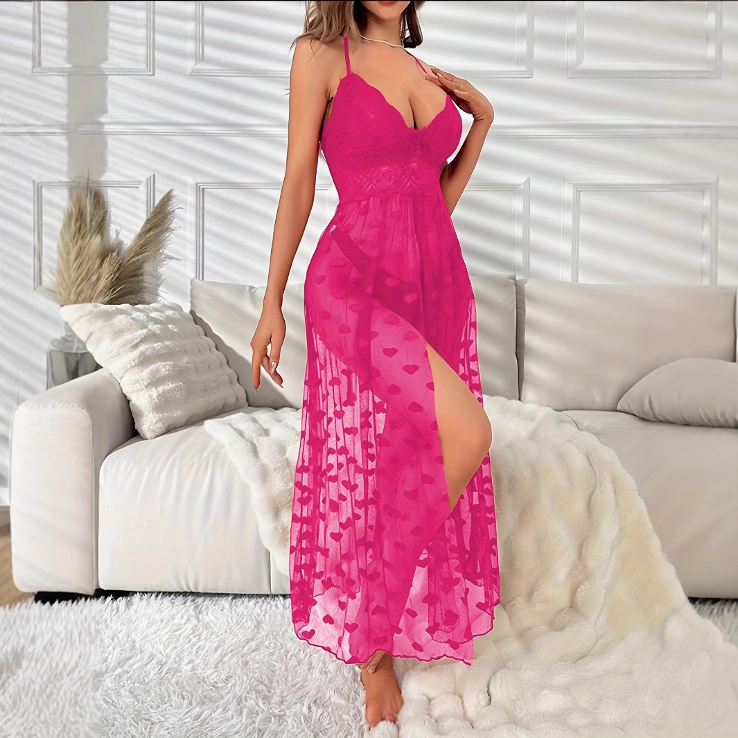 Elegant plus size lace suspenders dress designed for a flattering fit and seductive style for women.