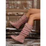 Elegant plus size women’s boots featuring side zipper and pleated pile design for stylish comfort and easy wear.