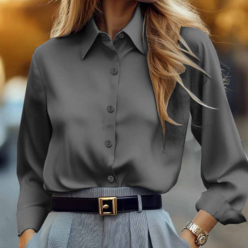 Classic plus size women’s solid color lapel long sleeve blouse, perfect for office and formal occasions with a button-down design.