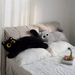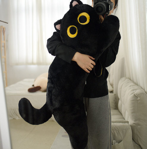Soft plush black cat throw pillow adds cozy charm and style to any living space or bedroom decor.