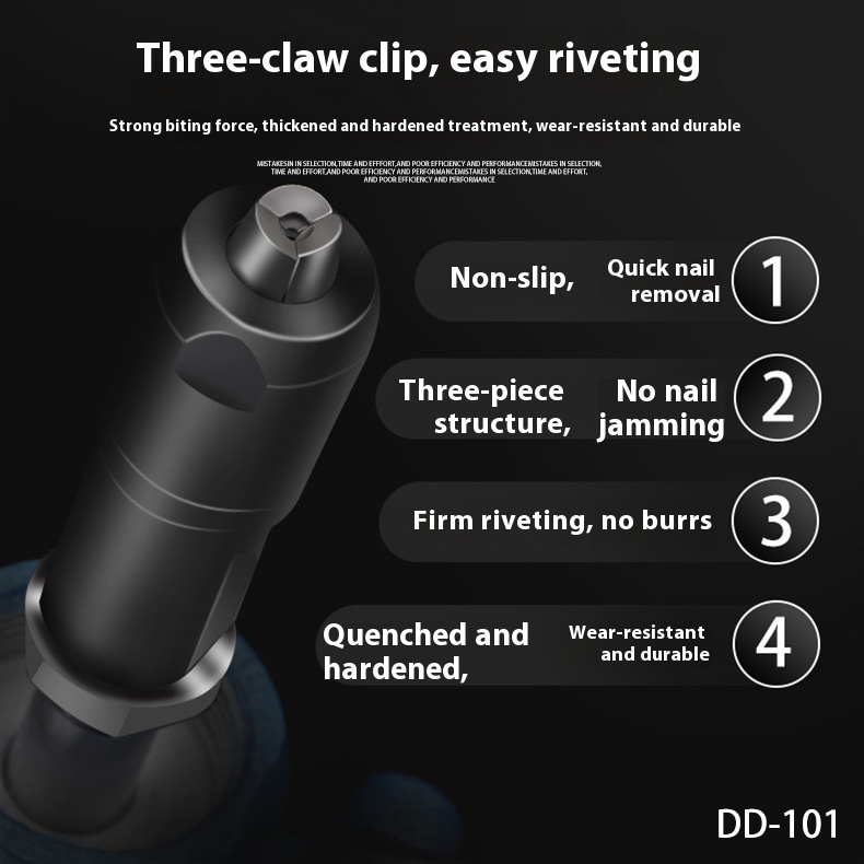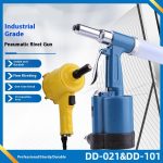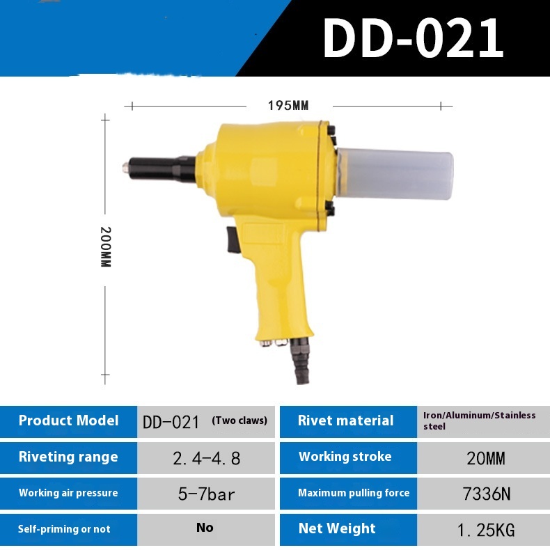 This pneumatic nail removal and riveting gun features a robust aluminum alloy core designed for strength and longevity. It efficiently removes nails and performs precise riveting, making it ideal for construction, woodworking, and industrial applications. The ergonomic design ensures comfortable handling during extended use, while the pneumatic mechanism provides consistent power for reliable operation. Lightweight yet durable, this tool enhances productivity and accuracy in nail extraction and rivet fastening tasks.