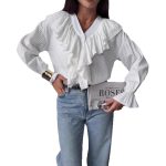 Be the first to review “Polyester Women’s V-neck Flounce Long Sleeve Shirt” Cancel reply