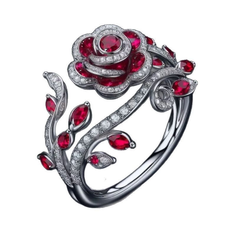 This exquisite ring showcases a delicate arrangement of winding interwoven leaves and floral motifs, accented with vibrant red micro-inlaid zircon stones. Crafted with precision, the intricate design combines natural elements with sparkling zircon detailing, making it a stunning accessory for any occasion. The ring’s elegant structure offers a refined and timeless appeal, suitable for enhancing both casual and formal ensembles.