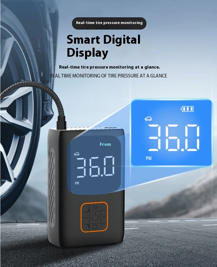 Compact wireless digital tire pressure monitor with smart display for real-time car tire status and safety monitoring.