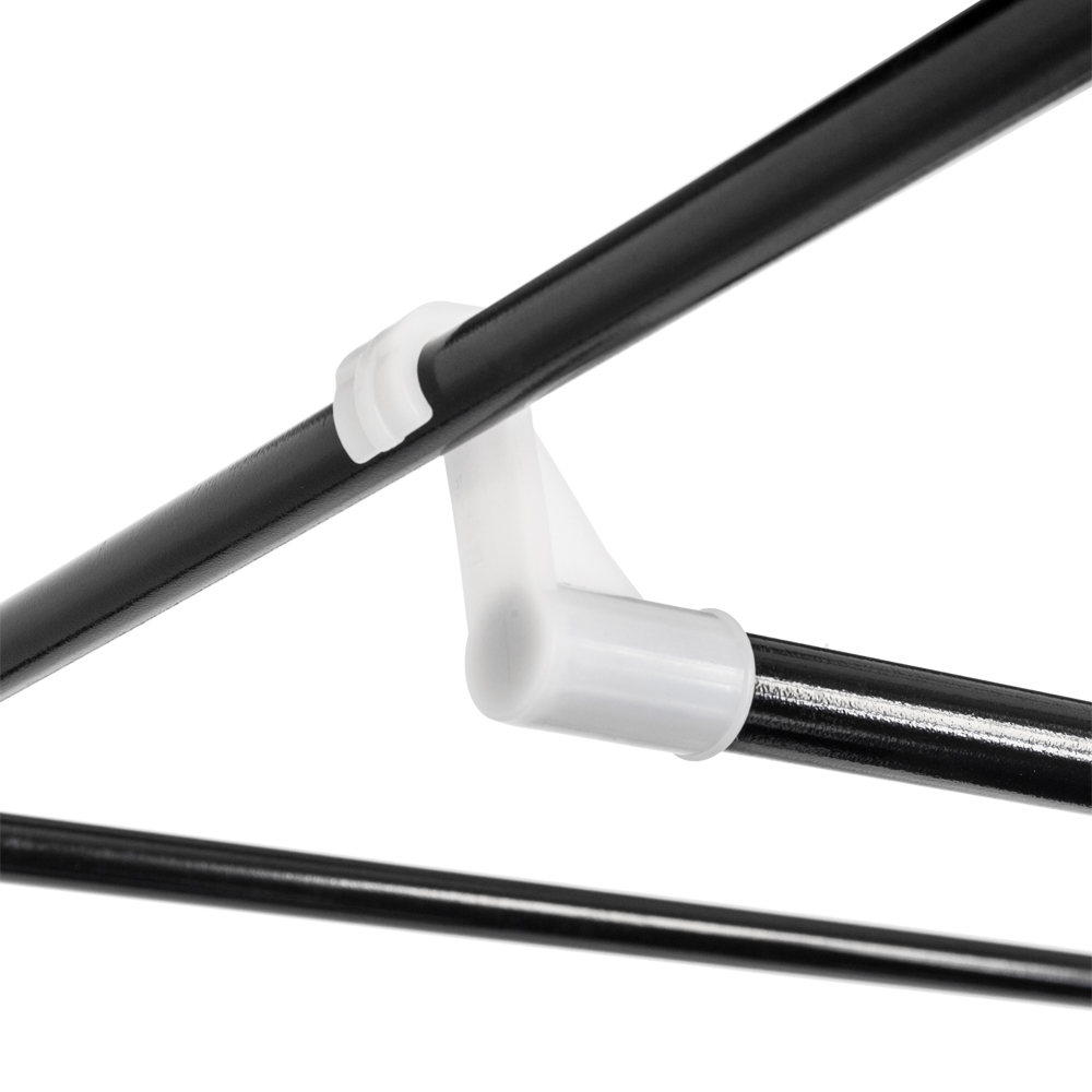 Black portable clothes rack with shelf, ideal for closet organization and storage. Durable and space-saving wardrobe solution.