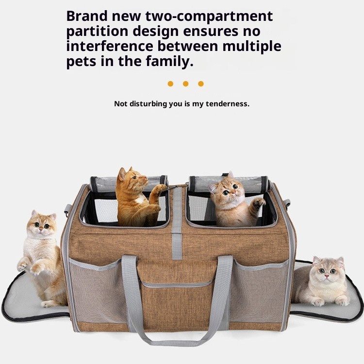This portable pet carrier features a foldable design with universal wheels, ensuring effortless mobility. Constructed with breathable materials, it provides ample ventilation for pet comfort. The carrier includes both hand-held and cross-body straps for versatile carrying options. Its large capacity accommodates pets of various sizes, making it a practical choice for travel and daily outings.