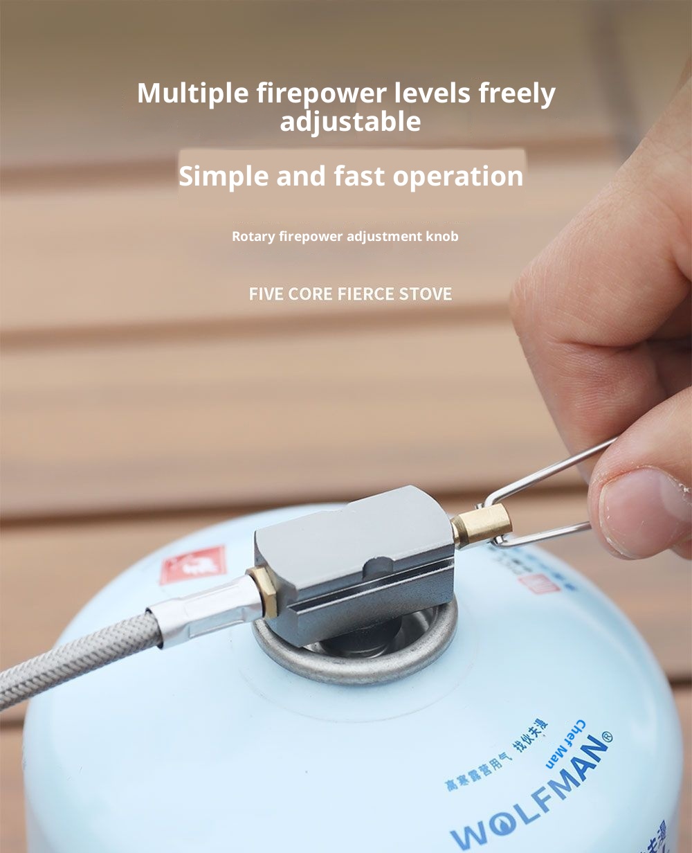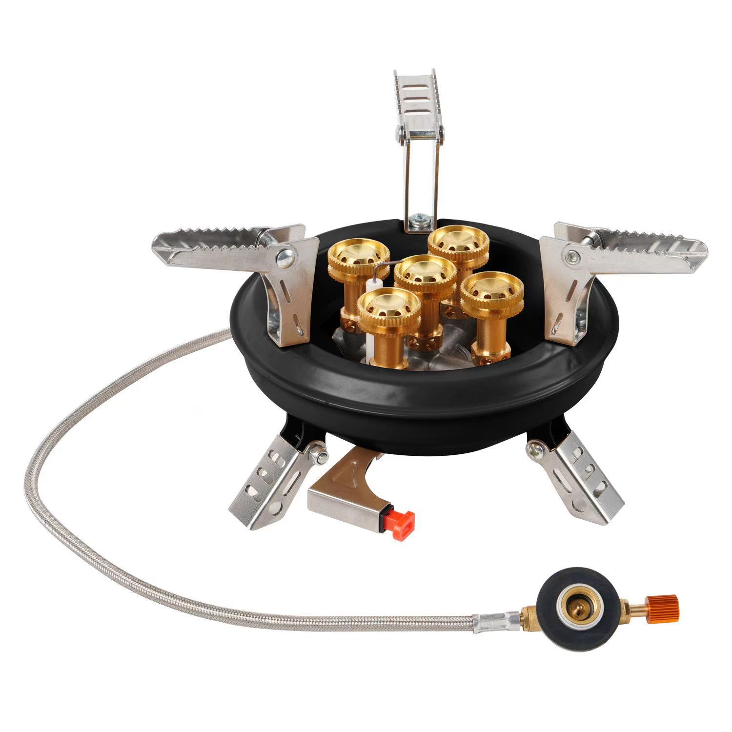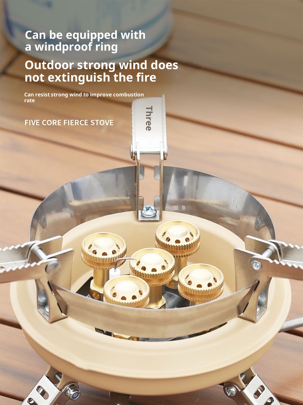Compact windproof portable gas stove ideal for outdoor camping, picnics, and travel cooking needs.