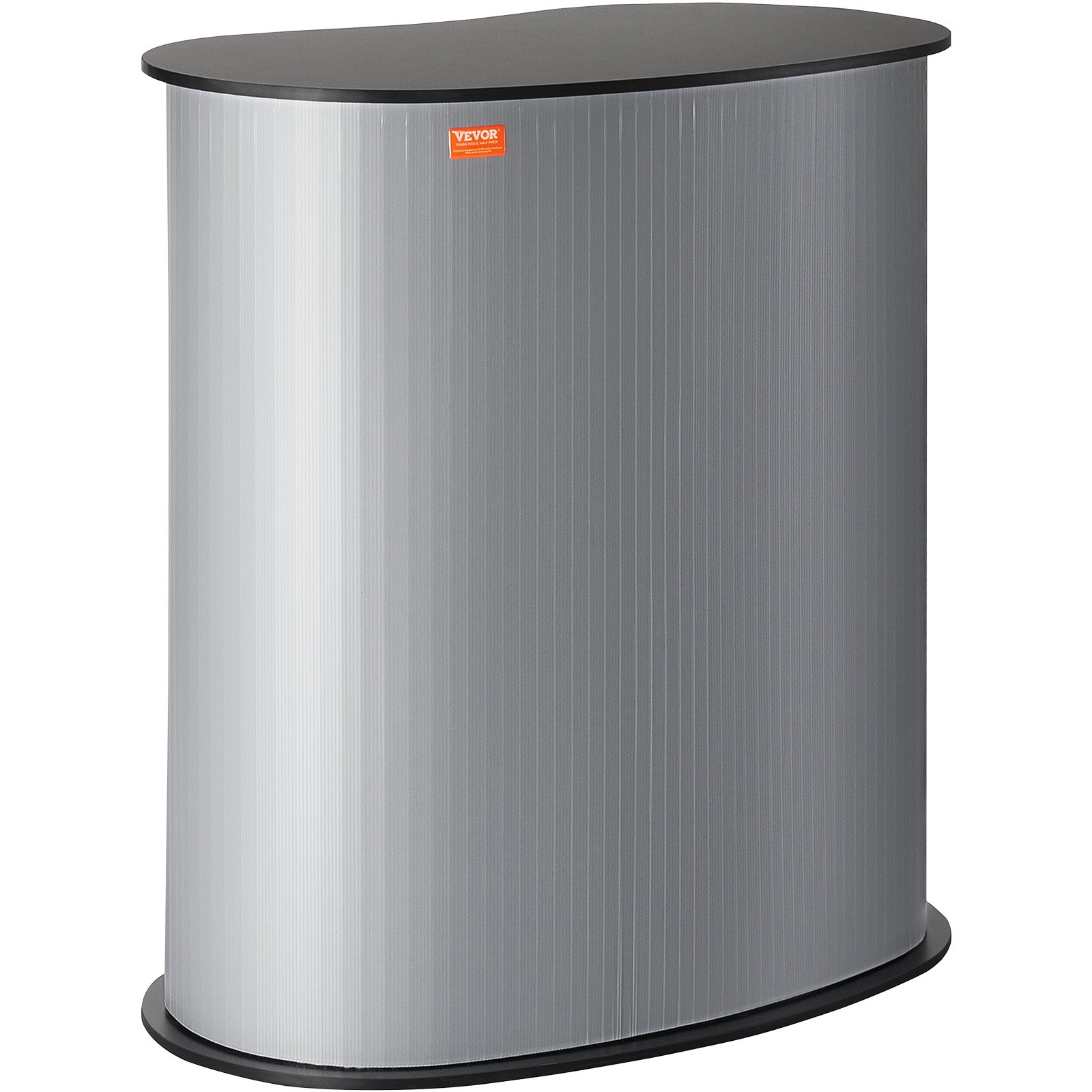 This portable tradeshow podium table measures 35.43 inches in length, 19.29 inches in width, and 37.01 inches in height, providing a compact yet functional display solution. Designed with foldable construction and integrated walls, it serves as an efficient exhibition counter or retail fair booth for promotional activities. The tabletop and counter space are optimized for showcasing products or marketing materials. Its lightweight frame and included carrying bag ensure convenient portability for trade shows and events. The structure is durable and practical for repeated assembly and disassembly, enhancing ease of use in various professional settings.
