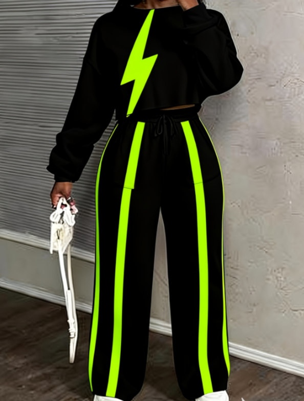 Be the first to review “Printed Casual Cropped Sweatshirt And Wide-leg Pants Set”