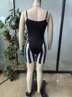 Stylish printed color-block jumpsuit with strappy design, bodycon fit, perfect for a sexy and confident look.
