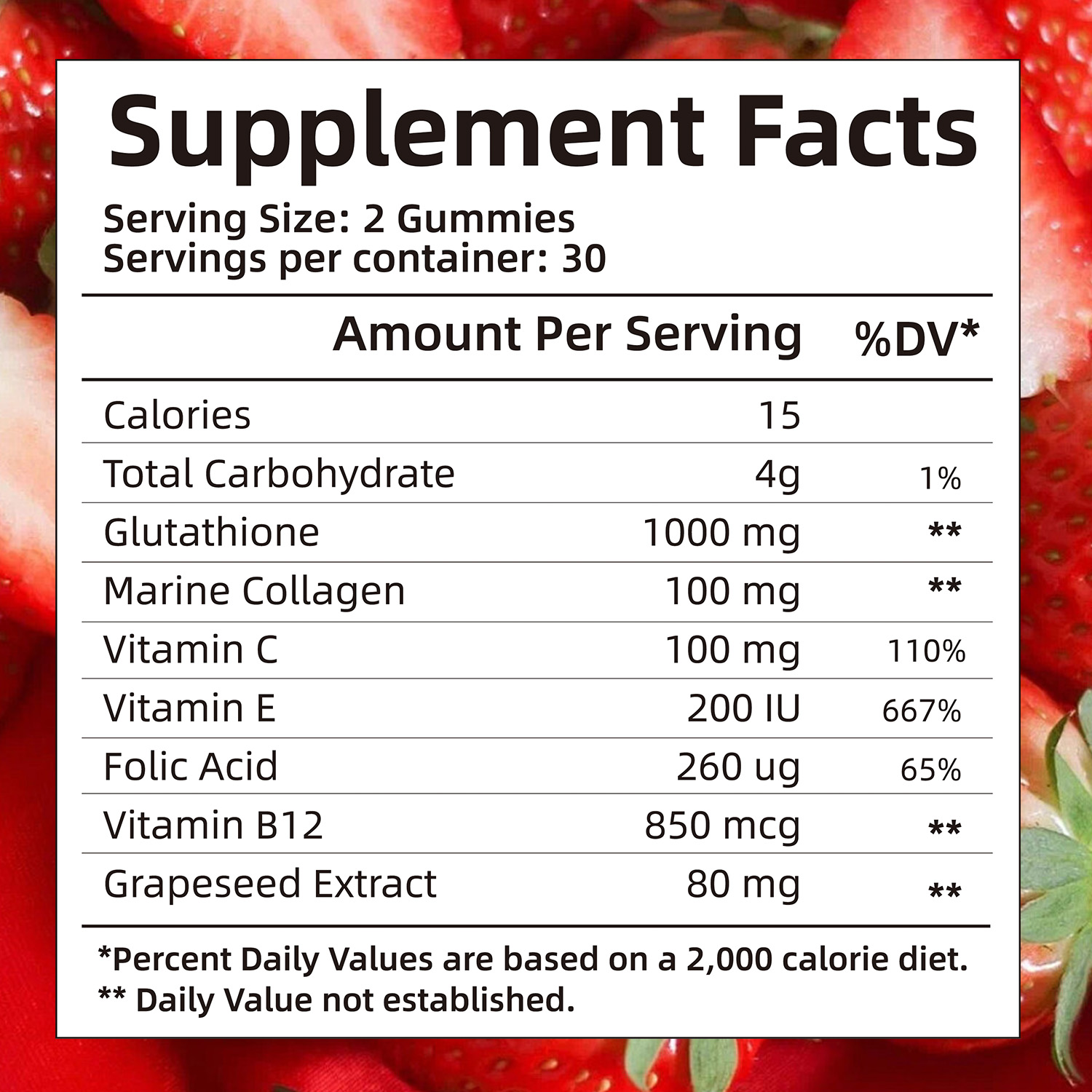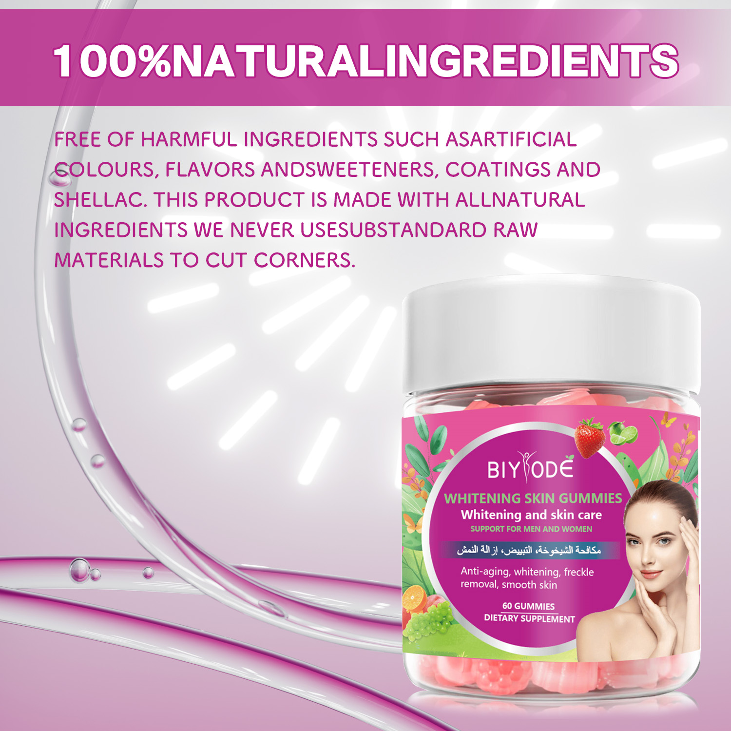 Herbal skin whitening gummies with glutathione, collagen, vitamins C, E, B12, and grape seed extract for natural beauty support. OEM ODM available.