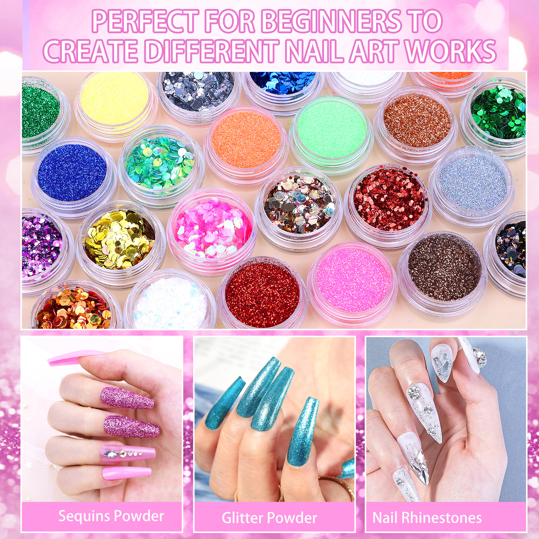 Nail Kit Set Professional Acrylic: Acrylic nail kit for beginners with everything, comes with acrylic powder(30g), acrylic liquid monomer, rhinestones, pink UV nail light, 24 colors of glitter powder, and sequins, 100 pcs various size nail tips, acrylic nail brush, and other nail tools. You can choose different colors, patterns, and designs according to the occasion to better meet your needs for designing personalized nail art. Acrylic Powder and Liquid Set: The nail tech starter kit comes with 3 colors acrylic nail powder (white, clear, pink). The acrylic powder is made from a healthy and non-yellowing formula, which can be mixed with acrylic liquid monomer to form a bubble-free polymer, it takes 5~8 minutes to dry completely, and starters can create their favorite nail styles at will. Multi-colored Glitter Powder Nail Set: Acrylic nail set includes 24 colors of glitter and colored nail rhinestones. It has a variety of colors for you to choose from, which allows you to design your nails according to your preferences. Mix the glitter and acrylic powder well, you can diy eye-catching acrylic nail. Ideal Gift for Her: Nail kit for beginners with everything including electric nail drill will let them enjoy beautiful nail design.Suitable for holidays or special festivals, a great gift for Valentine’s Day, Mother’s Day, Halloween, Thanksgiving, Christmas, Birthdays, Anniversaries, or New Year.