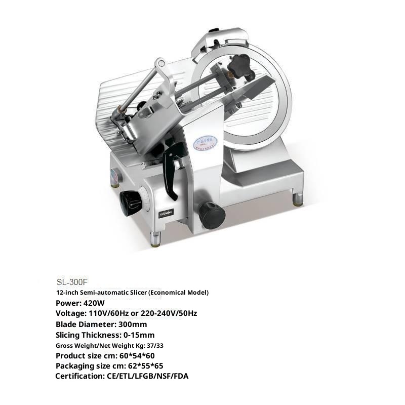 This professional-grade frozen meat slicer is engineered for commercial use, providing efficient and precise slicing of mutton and beef rolls. Constructed with durable materials, it ensures consistent performance in busy food preparation environments. The slicer features a robust design suitable for handling frozen meat products, offering clean, uniform cuts that enhance presentation and cooking quality. Its ergonomic operation and safety features cater to professional kitchen standards, making it an essential tool for meat processing in restaurants and butcher shops.