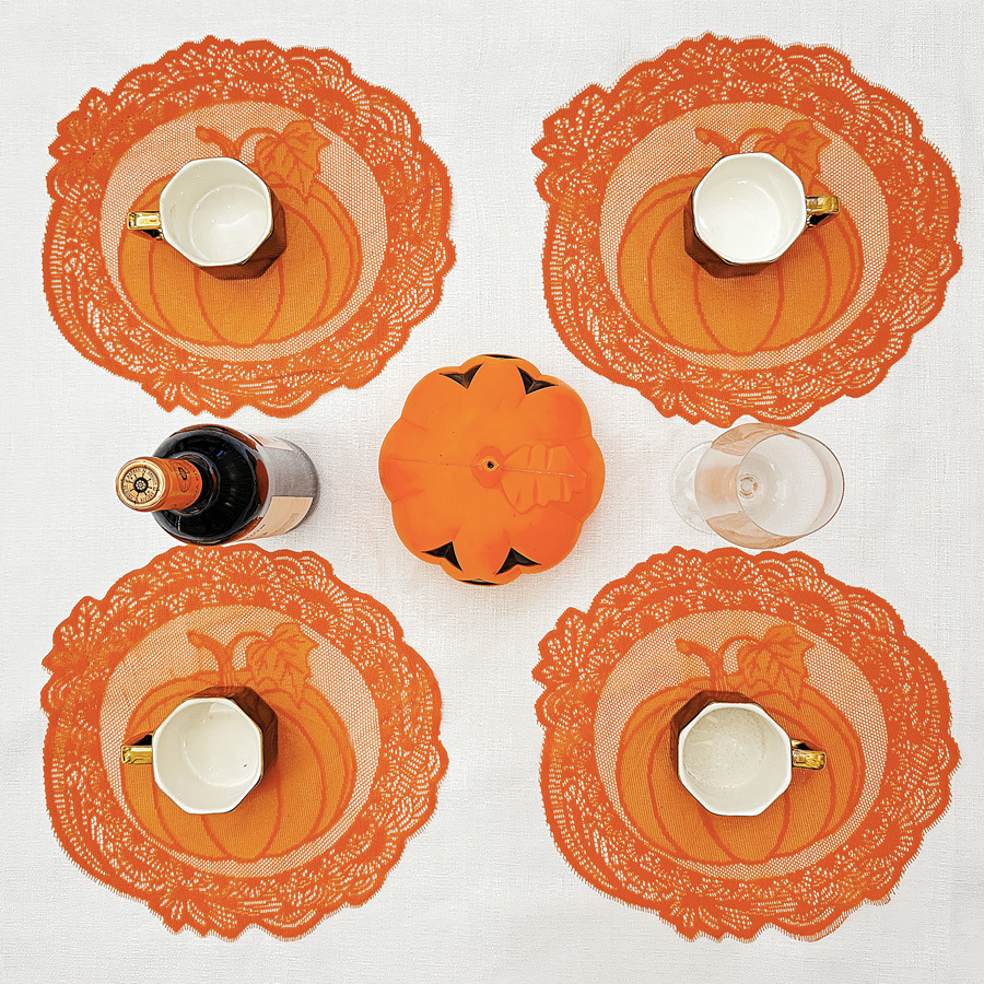 Durable woven pumpkin placemat adds autumn charm while protecting surfaces in your dining room or kitchen.