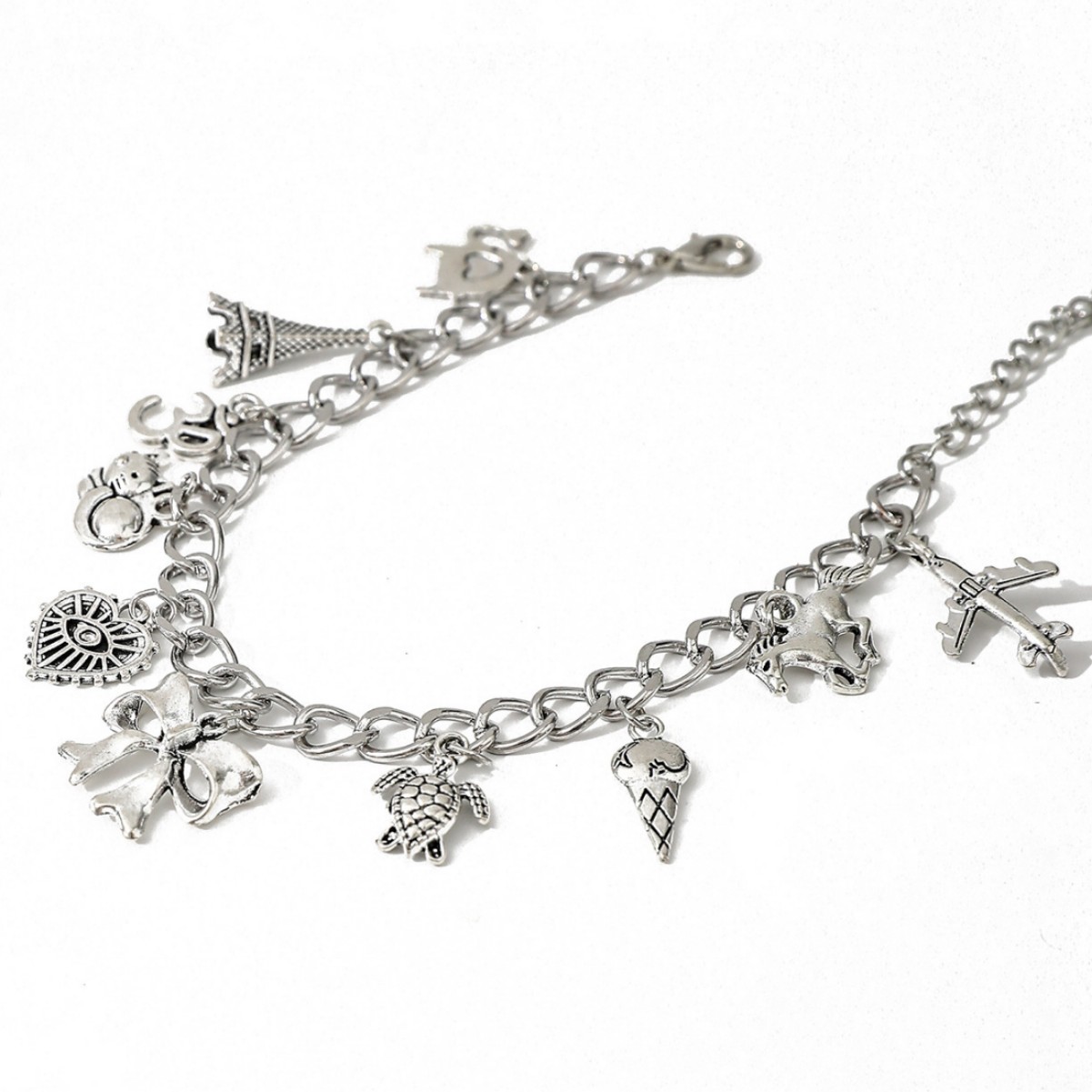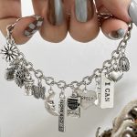 This punk-style bracelet incorporates multiple design elements, offering a distinctive accessory with a bold aesthetic. Crafted with care, it includes personalized airplane letter charms that add a unique and customizable feature. The bracelet’s robust construction ensures durability, making it suitable for everyday wear. Its versatile design complements various outfits, appealing to those who appreciate edgy yet personalized jewelry.
