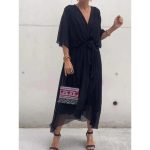 Be the first to review “Pure Color Tied Long Dress Batwing Sleeve Irregular Dress Plus Size” Cancel reply