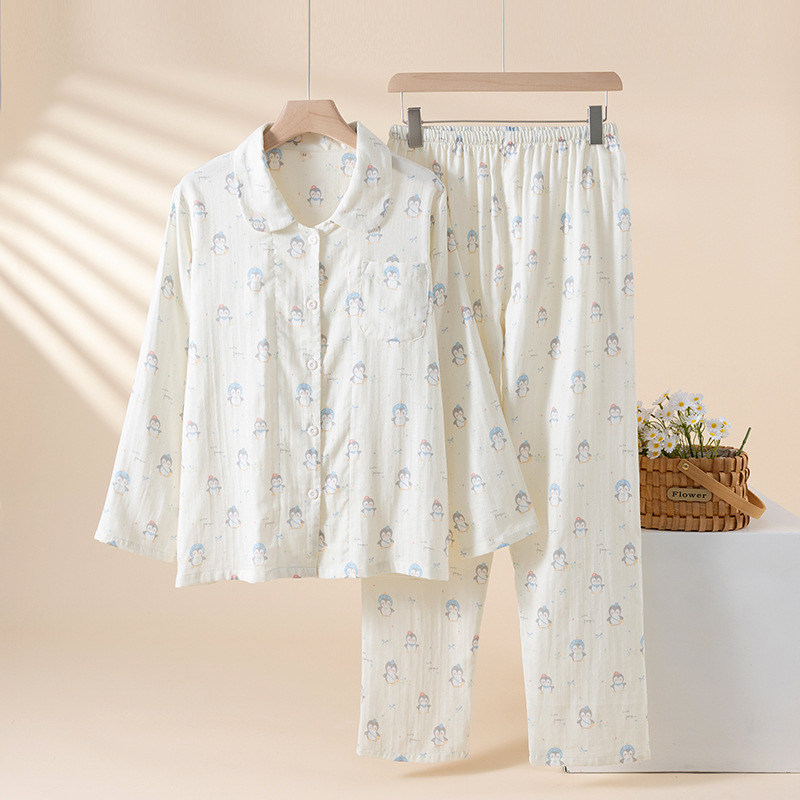 Comfortable pure cotton summer loungewear with breathable fabric and playful cartoon lapel, ideal for students.