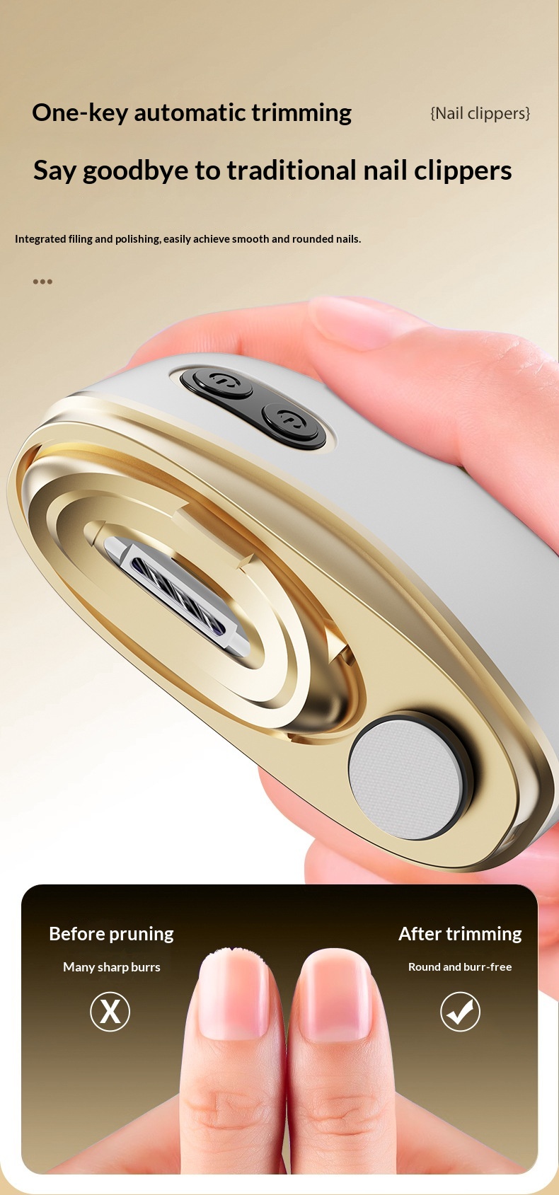 Effortlessly trim nails at home with this quiet, portable electric nail clipper designed to prevent pinching and ensure safe grooming.
