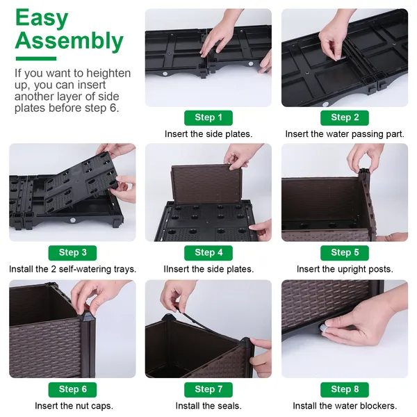 This elevated rectangular garden bed features an integrated self-watering system designed to support healthy growth of flowers, vegetables, and herbs. Constructed with durable, weather-resistant materials, it offers long-lasting outdoor use on patios, balconies, or garden spaces. The raised design facilitates easy planting and maintenance while improving soil drainage and aeration. Its spacious planter box provides ample room for various plants, promoting efficient gardening in limited spaces. Suitable for diverse outdoor environments, this planter enhances both the functionality and aesthetics of your gardening area.