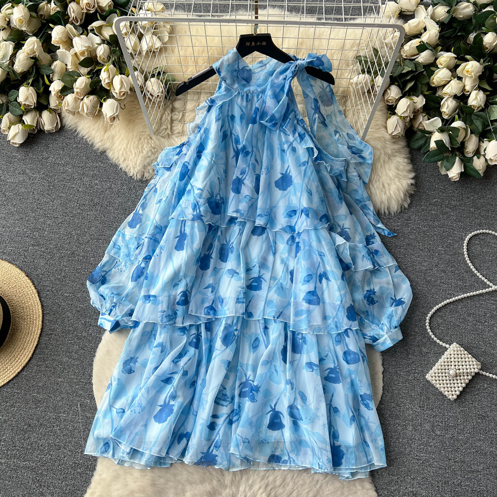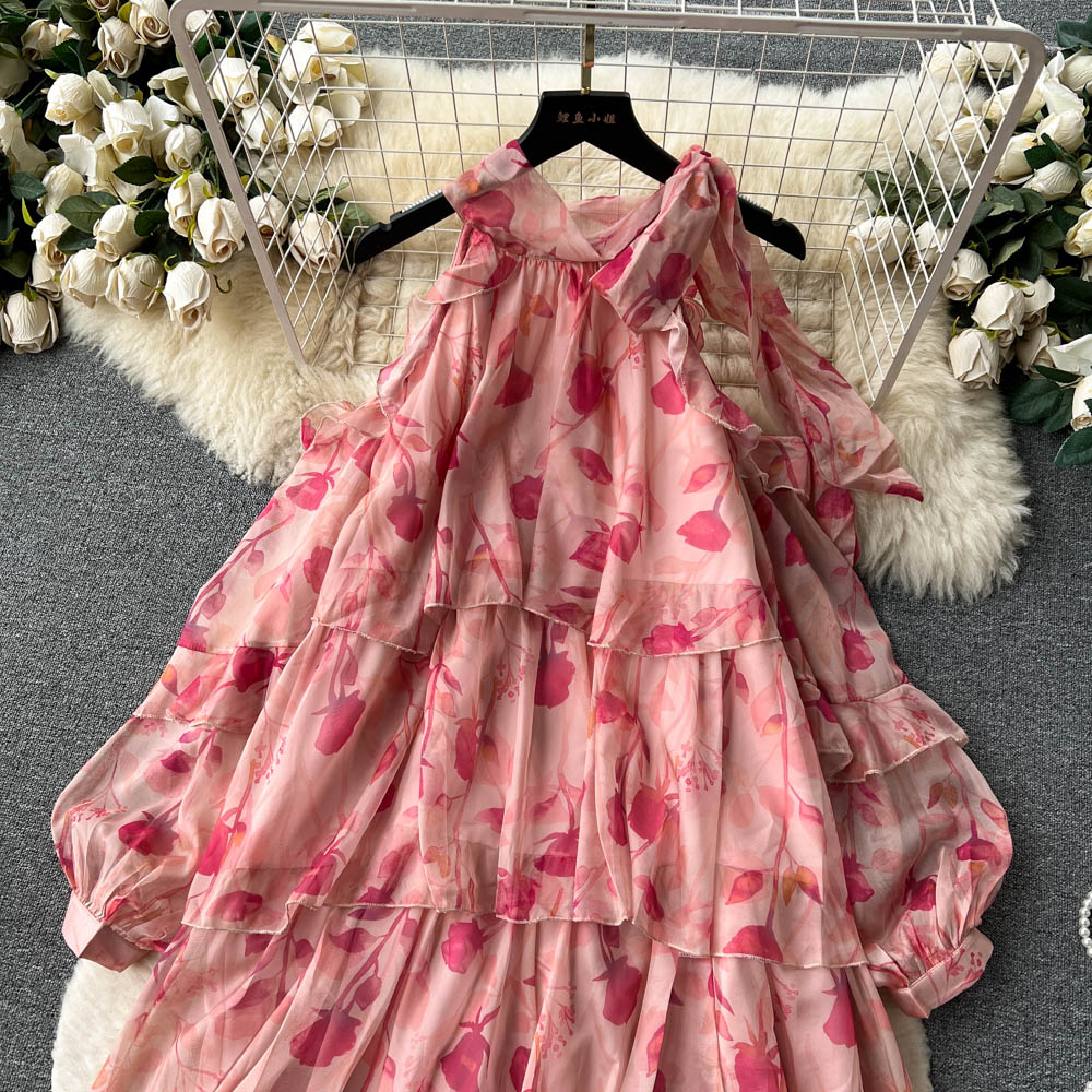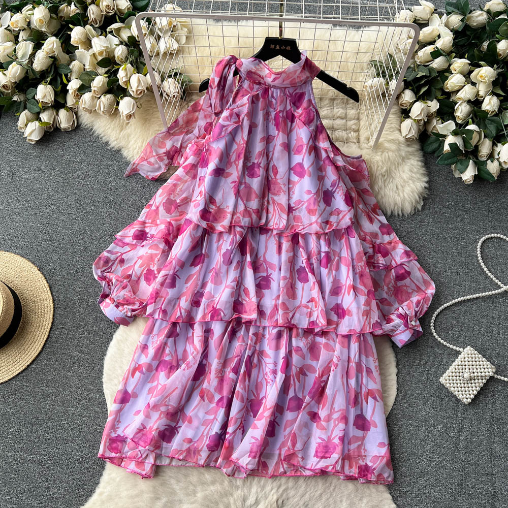 Rare Vacation-style Floral Chiffon Dress